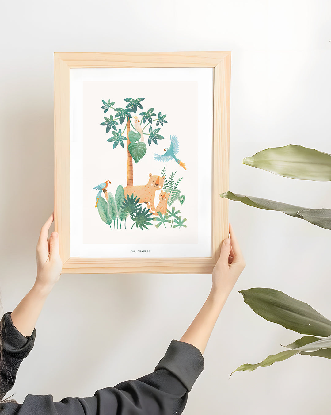 L'affiche "Yatsuni Vie Sauvage Animaux" est un véritable voyage au cœur de la nature sauvage. Son design tropical et exotique s'inspire des animaux et de la végétation luxuriante, créant une atmosphère chaleureuse et captivante dans la chambre de votre enfant. Idéale pour les petits aventuriers, cette affiche apporte une touche moderne et vivante à n'importe quel intérieur.