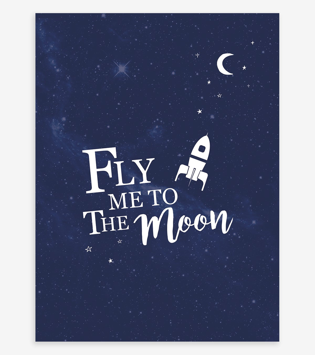 FLY ME TO THE MOON - Affiche enfant - Espace et fusé