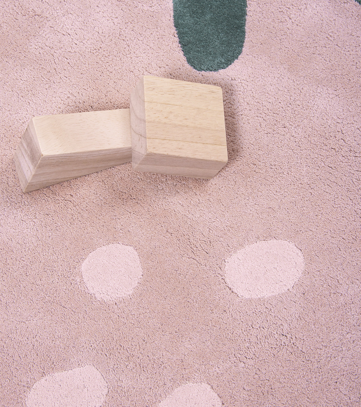 Tapis enfant conçu en coton tufté avec un velours ras de 10-11 mm, ce tapis allie élégance et douceur.