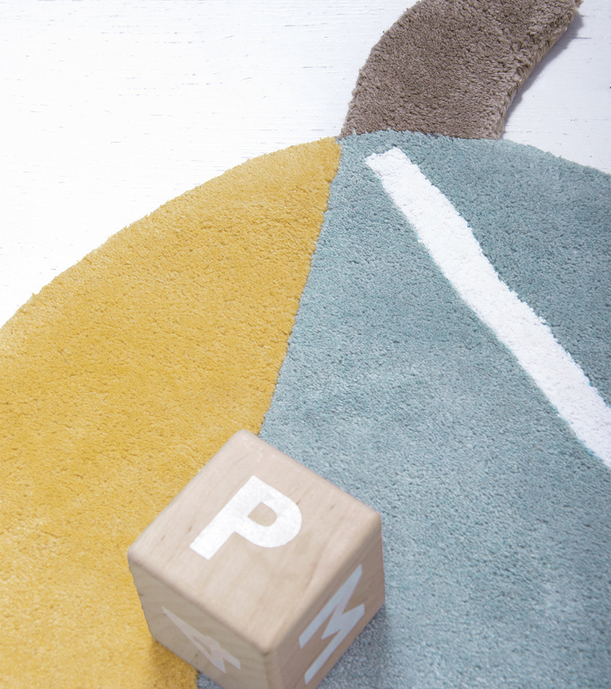Tapis enfant conçu en coton tufté avec un velours ras de 10-11 mm, ce tapis allie élégance et douceur.