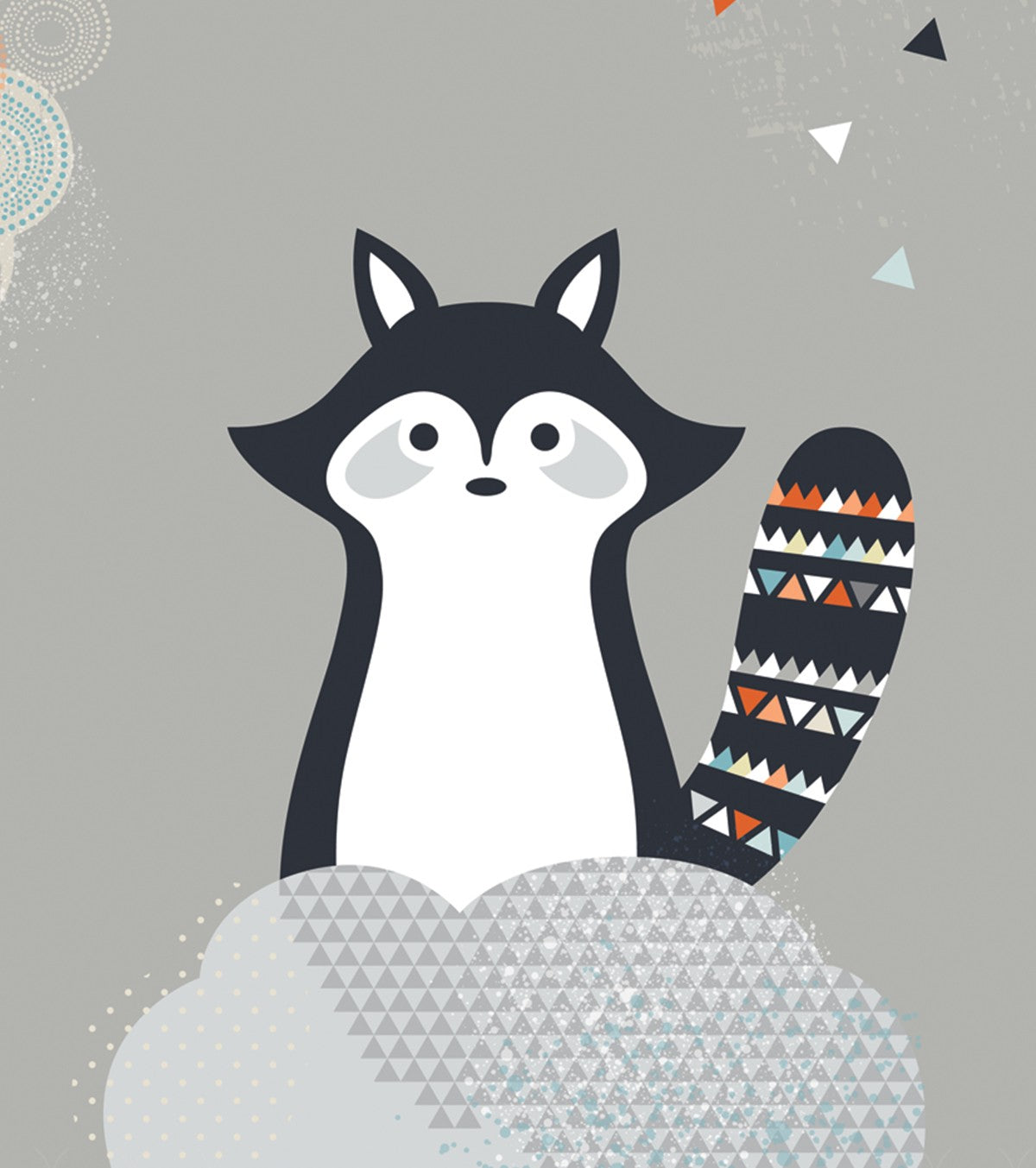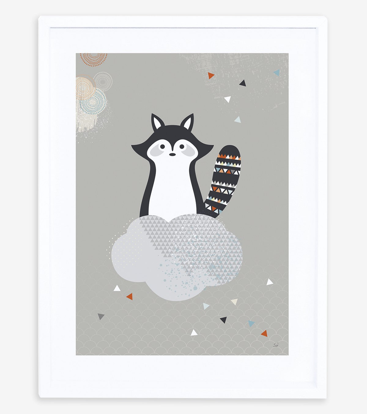 MAKI & KITSUNE - Affiche enfant - Raton laveur et nuage