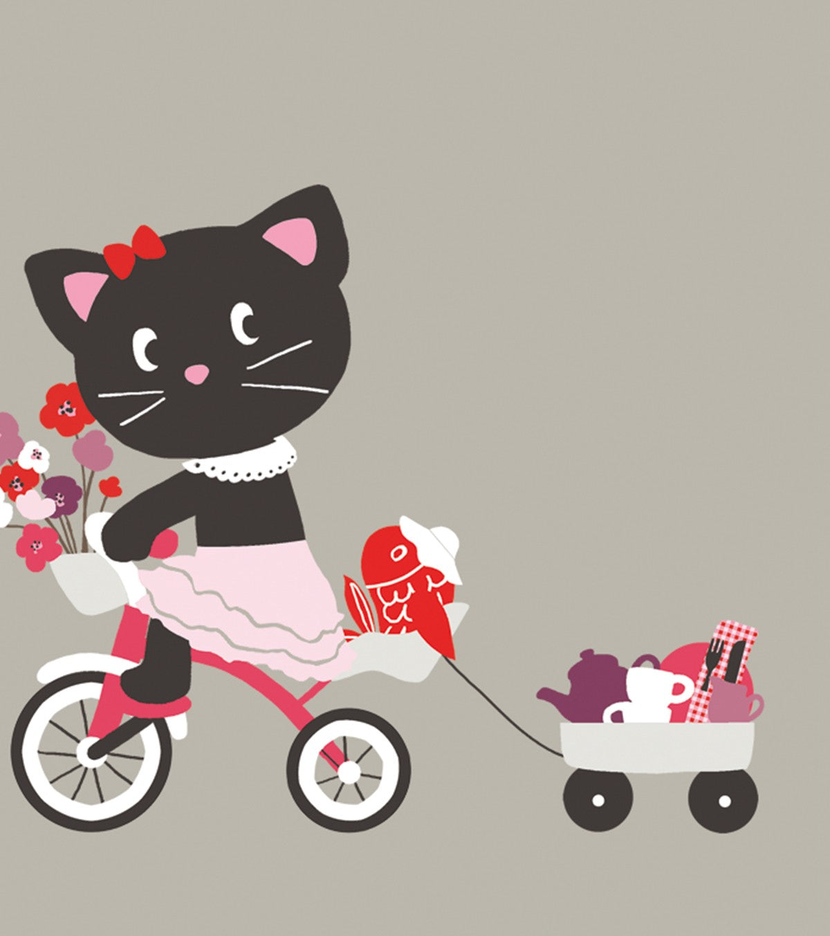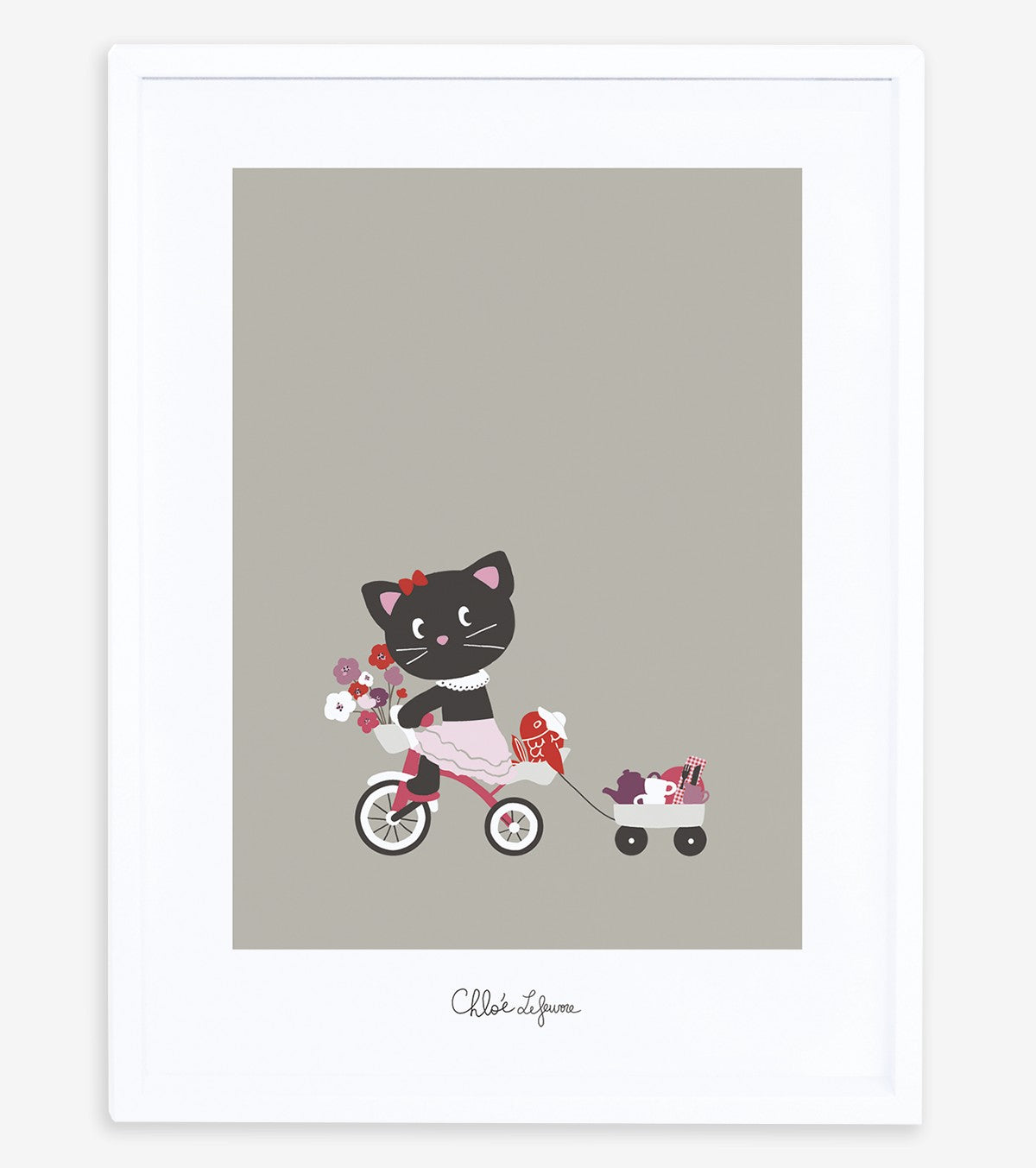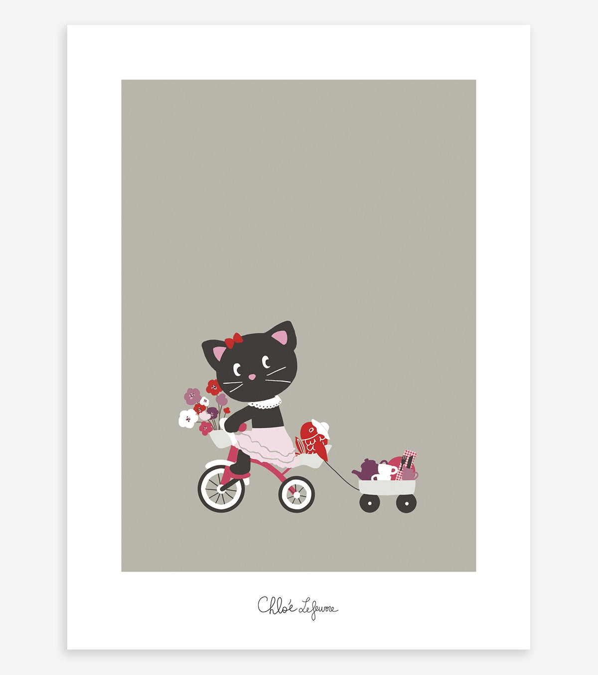 MILLY & FLORE - Affiche enfant - Chat et tricycle