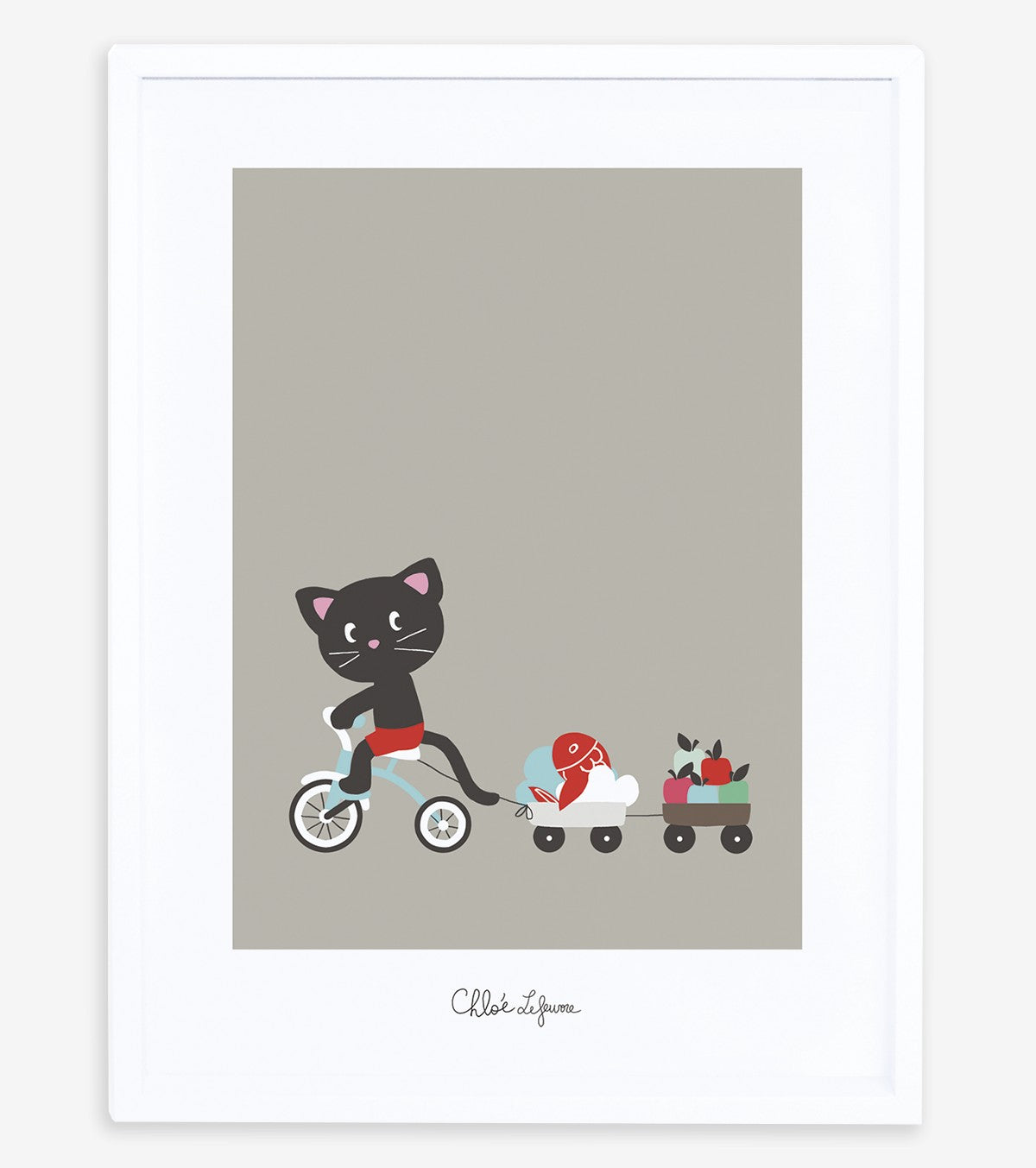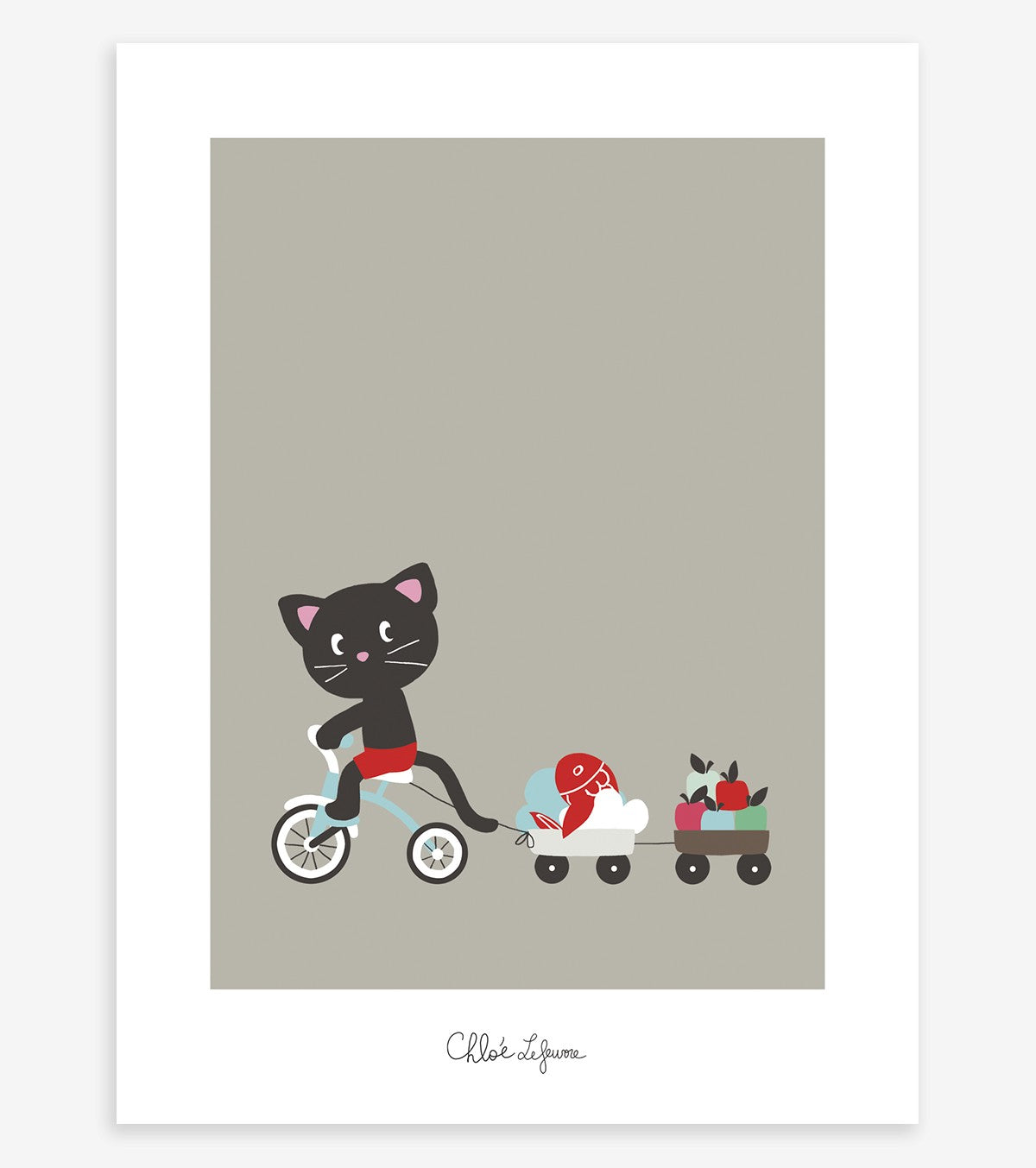 MOKA & POM - Affiche enfant - Chat et tricycle