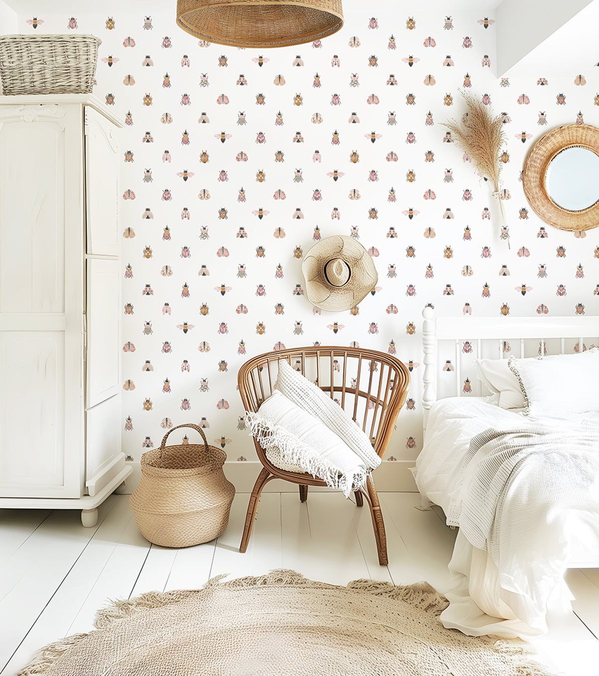 Le papier peint Coccinella métamorphose la chambre en un univers merveilleux où les insectes deviennent des personnages fascinants. Le fond clair met en valeur ces créatures adorables, ajoutant une touche de magie et de charme à chaque recoin. Le design est non seulement esthétiquement plaisant mais également conçu pour captiver l’imagination des enfants.