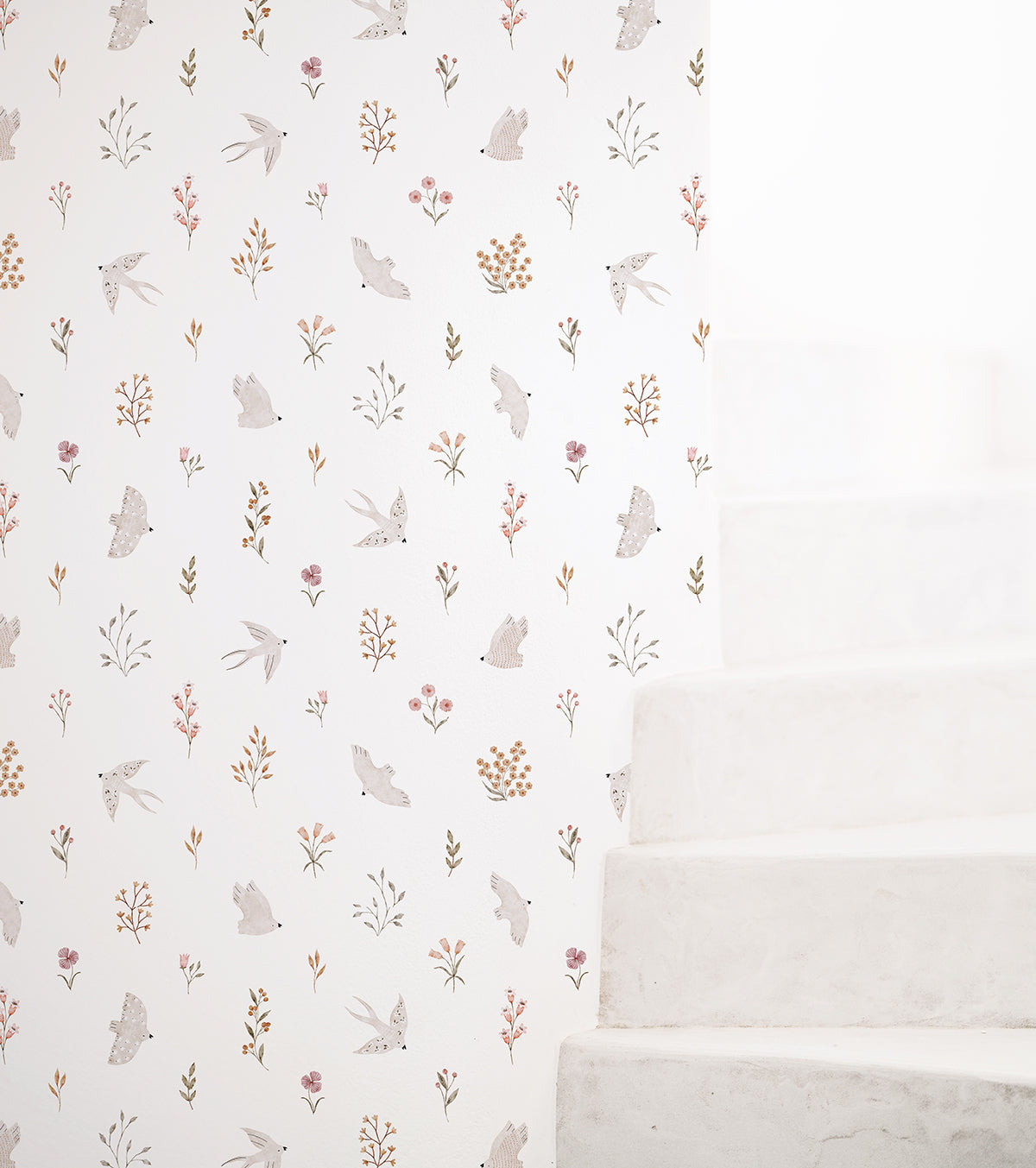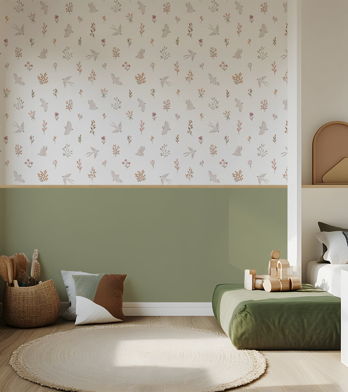 - aux enfants : Le design avec des hirondelles et des fleurs ajoute une dimension ludique et champêtre à leur chambre, stimulant leur imagination et leur curiosité.