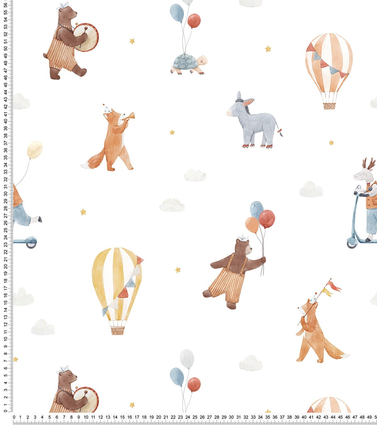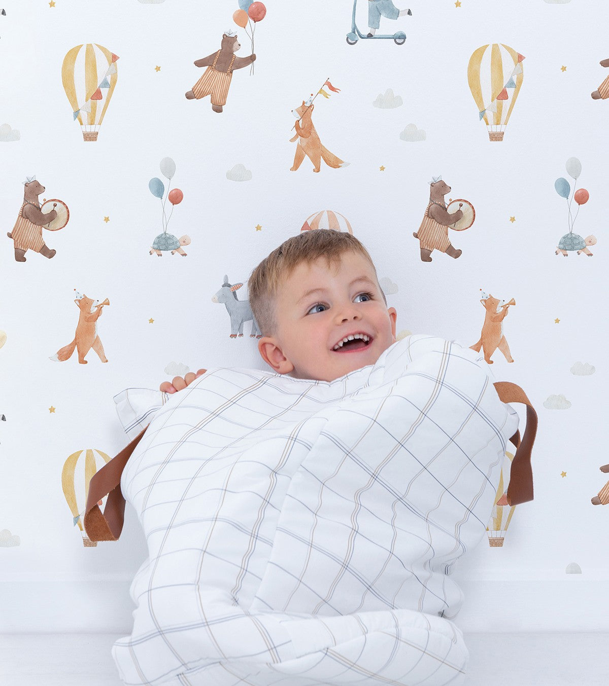 Le papier peint Gentle Friends transforme la chambre de votre enfant en un lieu magique. Avec ses motifs d'animaux adorables, comme des renards, des ours et des ânes, et ses montgolfières flottant dans un ciel étoilé, ce papier peint éveillera la curiosité et l’imagination des plus jeunes.