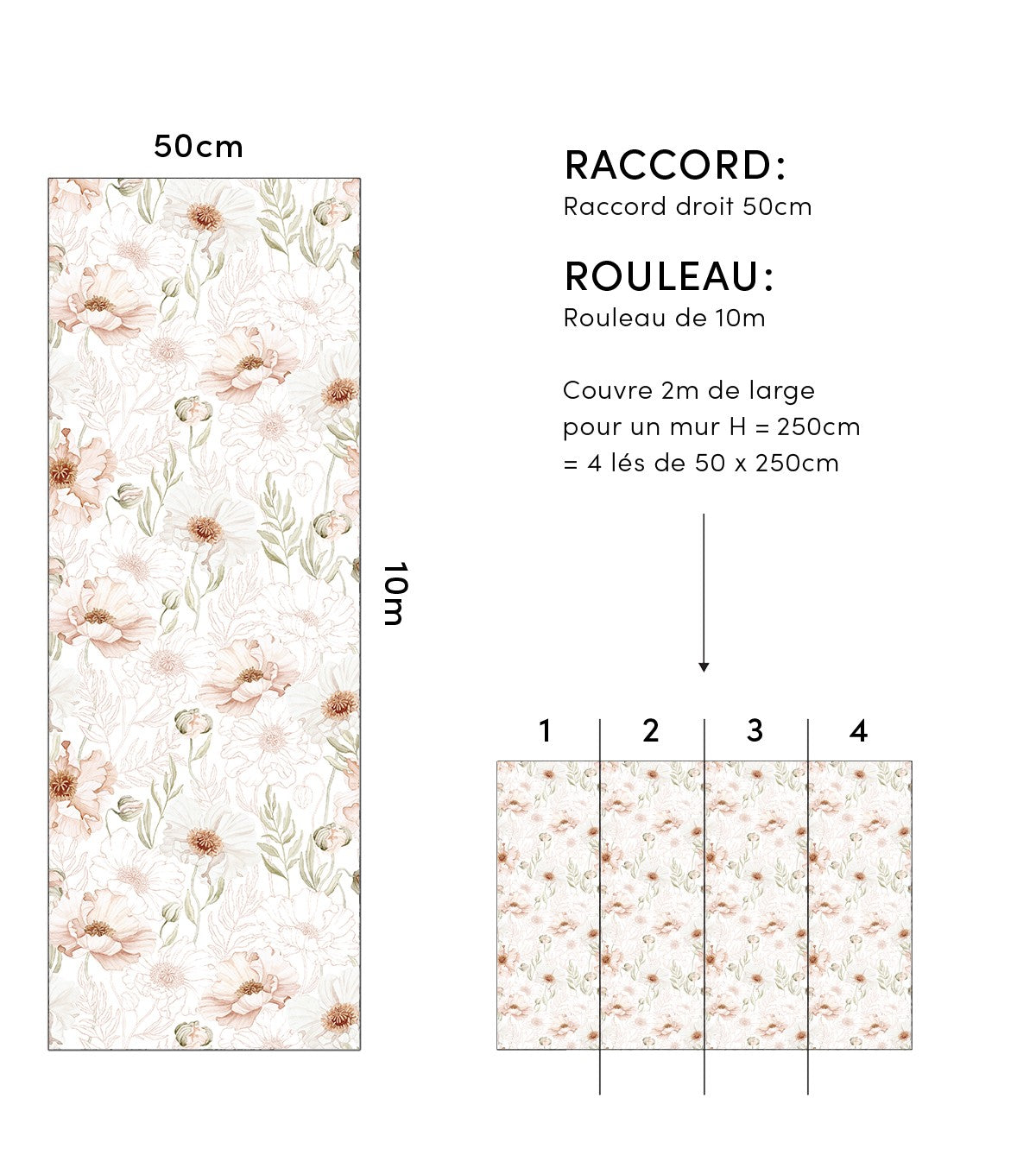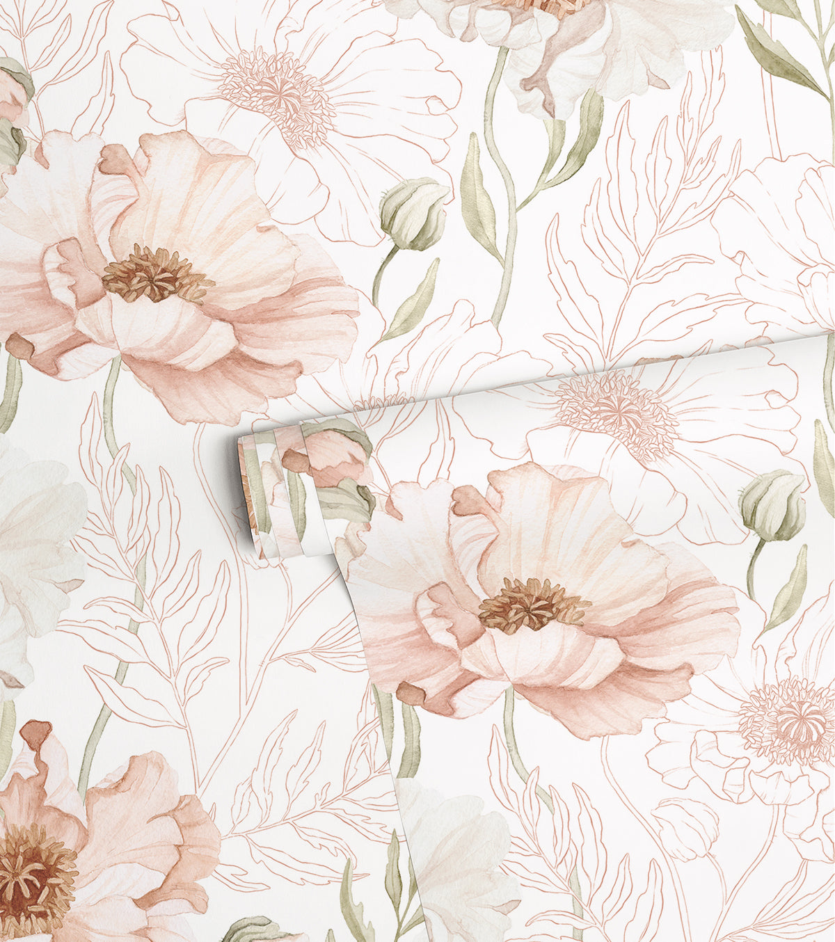 Avec ses motifs floraux délicats, ce papier peint coquelicots s’adapte à différents univers décoratifs :