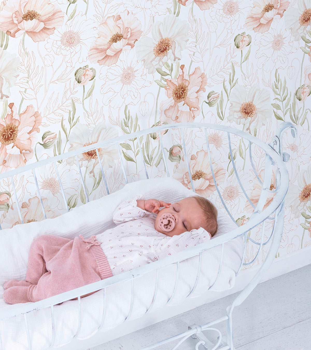 Le papier peint floral intissé Islandic Poppies se distingue par ses teintes douces de rose poudré et beige, parfaites pour créer une ambiance chaleureuse et poétique. Pour une décoration harmonieuse, voici quelques associations idéales :