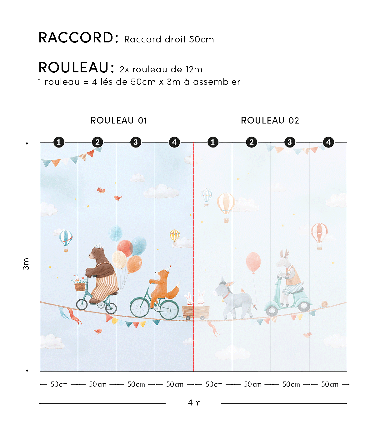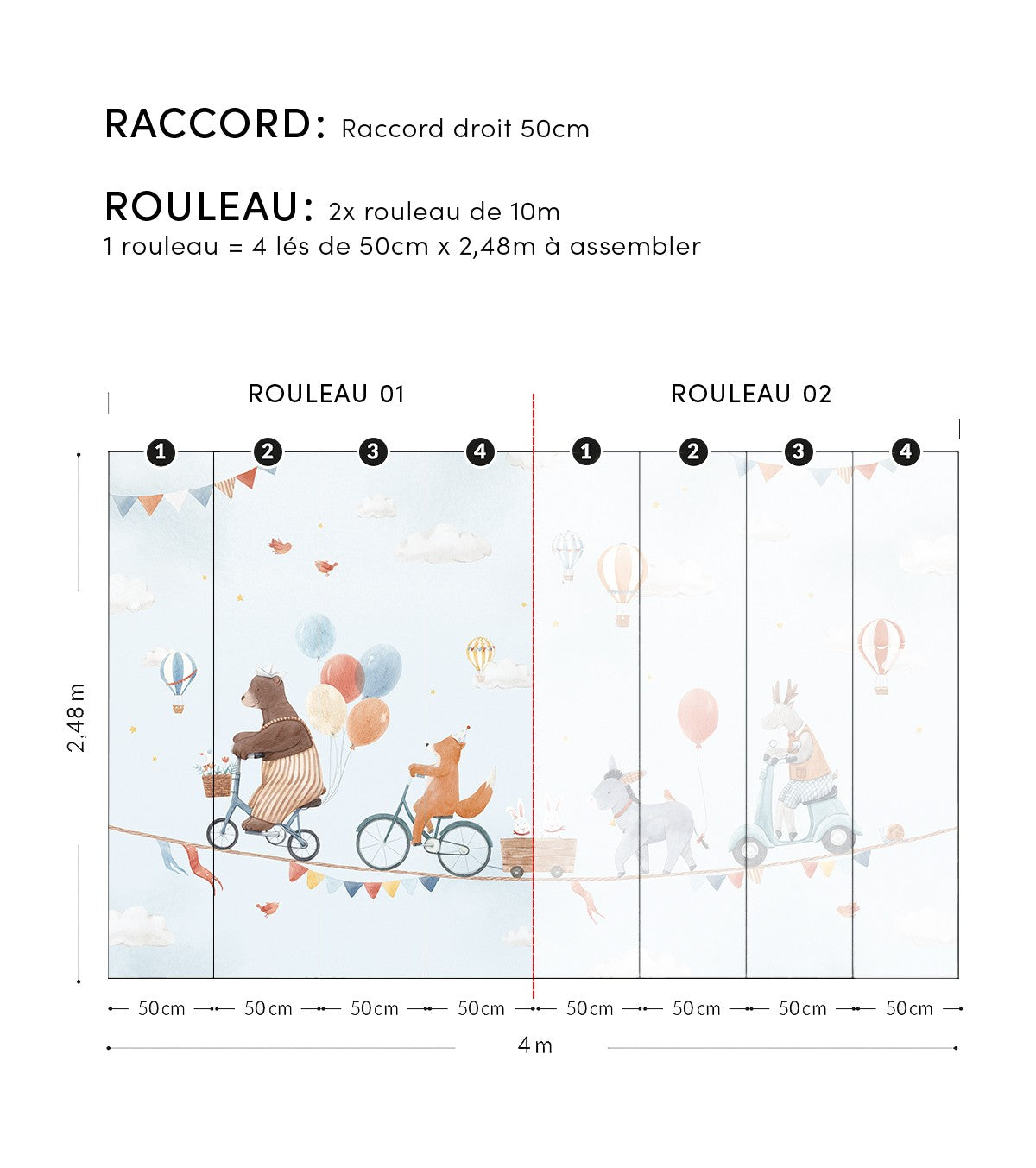 Le papier peint Gentle Friends est proposé en deux tailles, s'adaptant parfaitement à vos différents espaces, que ce soit dans une chambre d’enfant, une crèche ou une salle de jeux.