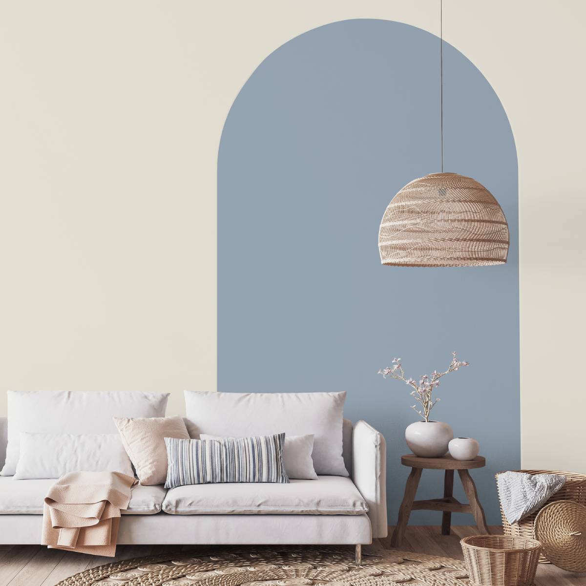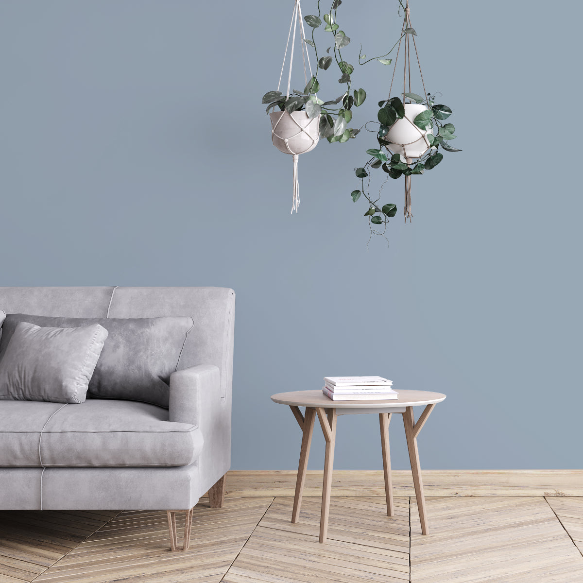 Associez-le avec des teintes beige, de lin ou optez pour des couleurs minérales comme les gris galets pour un contraste doux. En décoration, ce bleu se marie parfaitement avec du mobilier en bois clair ou naturel, et un papier peint aux motifs doux ou géométriques complétera l’atmosphère chaleureuse et intime.