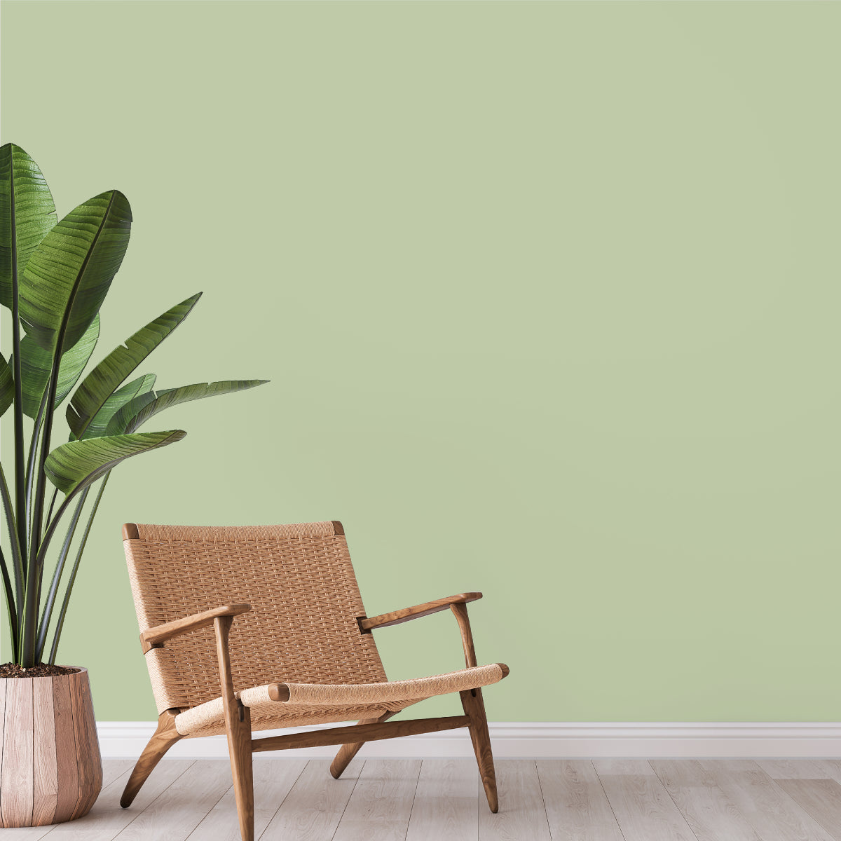 En décoration, optez pour des éléments en bois naturel ou des accessoires en rotin pour compléter cette teinte apaisante, ou utilisez un papier peint aux motifs doux ou jungle pour ajouter de la texture sans surcharger l’espace.