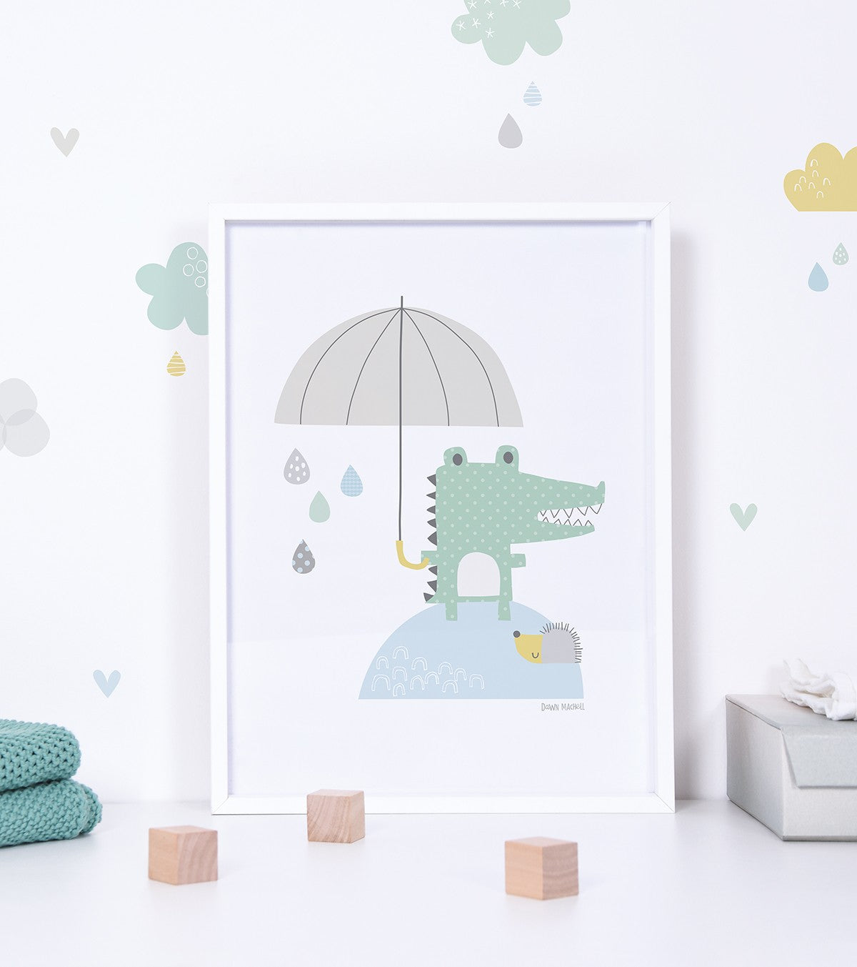 SMILE IT'S RAINING - Affiche enfant - Crocodile et son parapluie