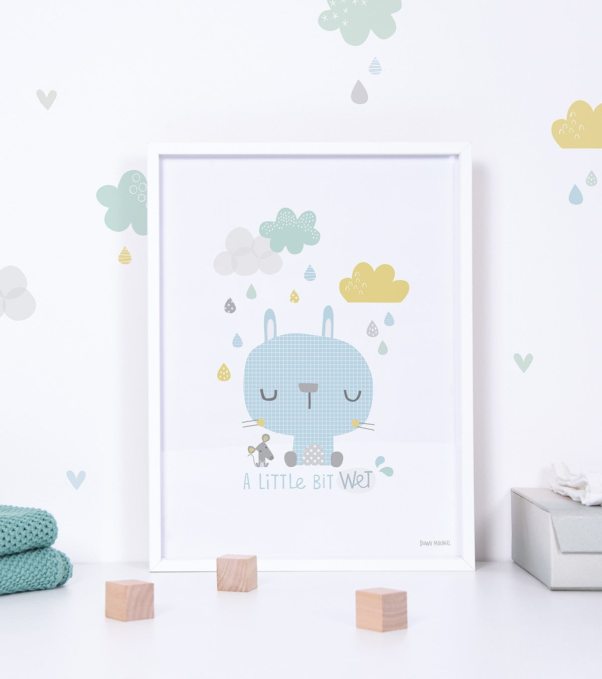 SMILE IT'S RAINING - Affiche enfant - Lapin et souris
