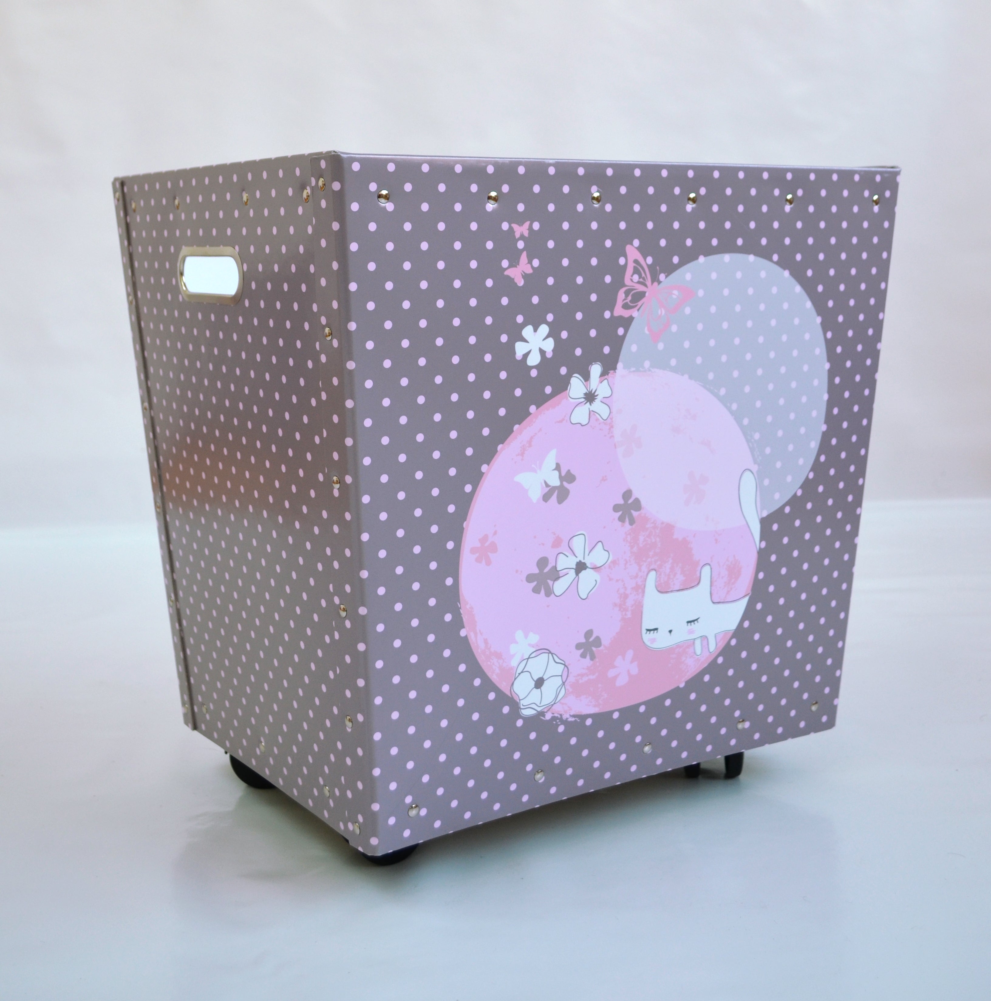 Facilitez le rangement des jouets de bébé avec ce coffre à roulettes en carton. Compact et pratique, il est parfait pour une chambre d’enfant, tout en ajoutant une touche décorative. Fabriqué en Europe.
