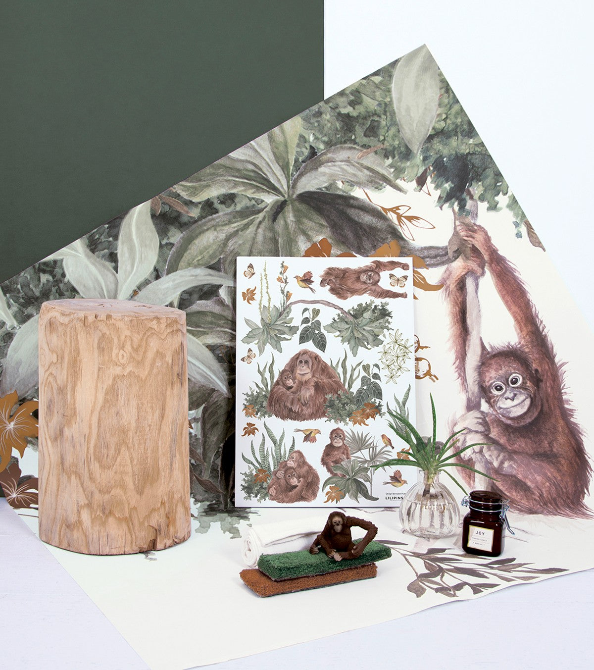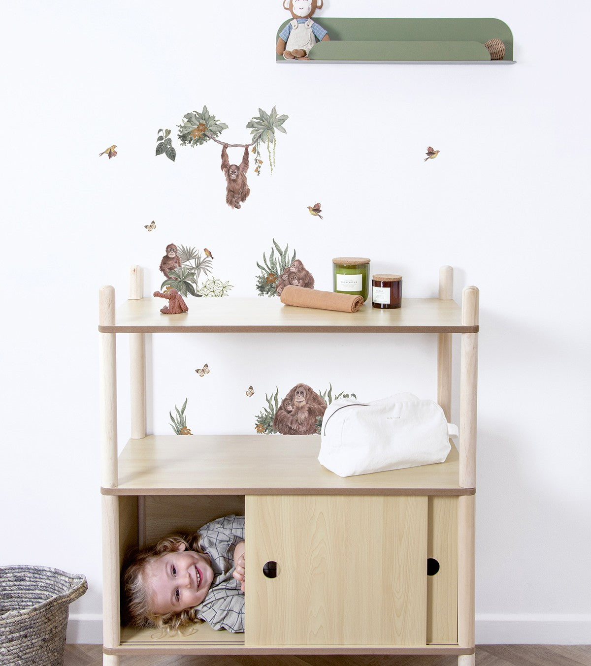 Le design tropical de ces singes et de ces plantes est parfait pour créer une ambiance exotique dans les chambres d'enfants ou d'autres espaces à personnaliser. À combiner avec d'autres éléments de la collection Utan pour un décor totalement immersif.
