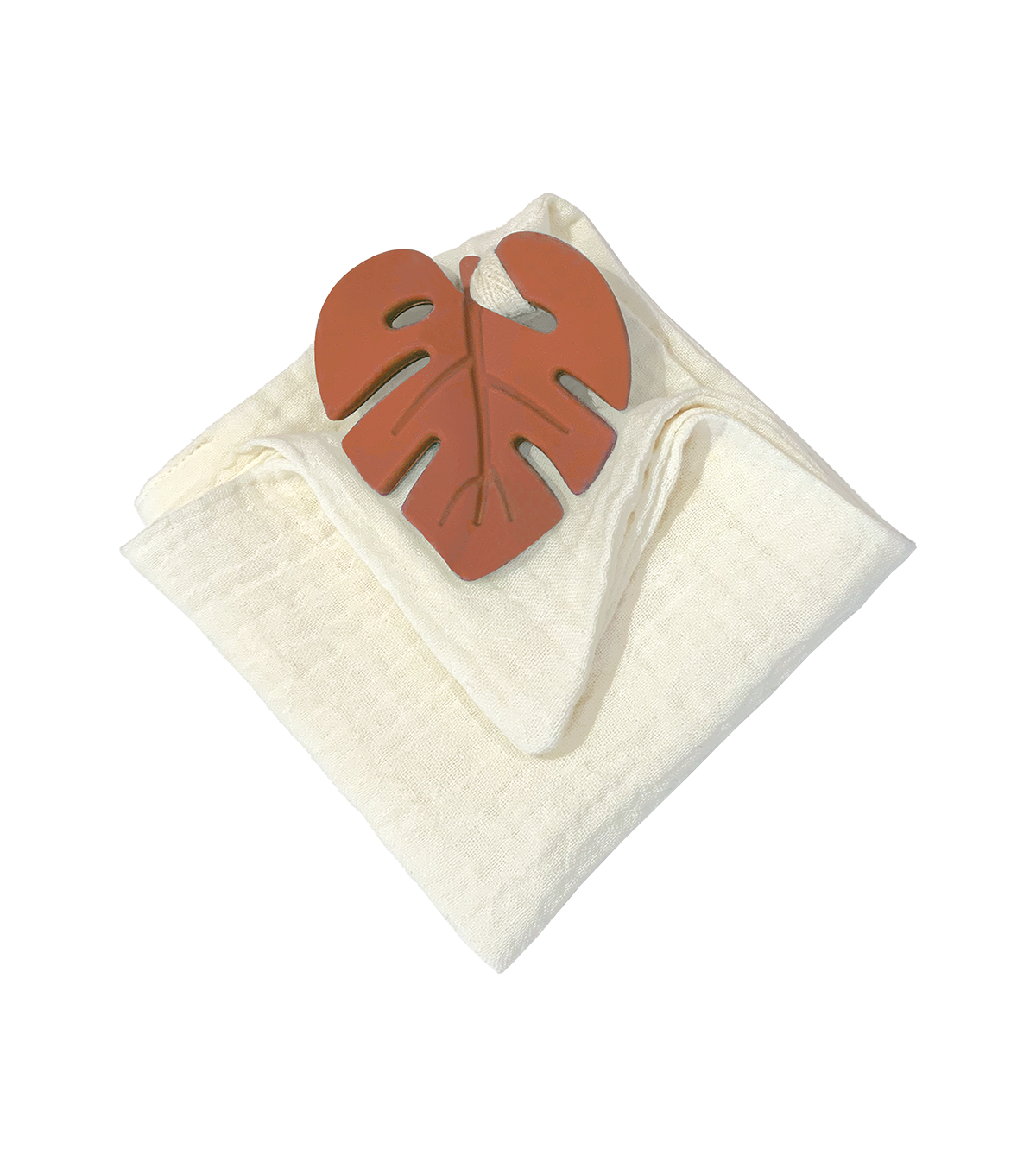 Anneau de dentition feuille terracotta et lange ivoire