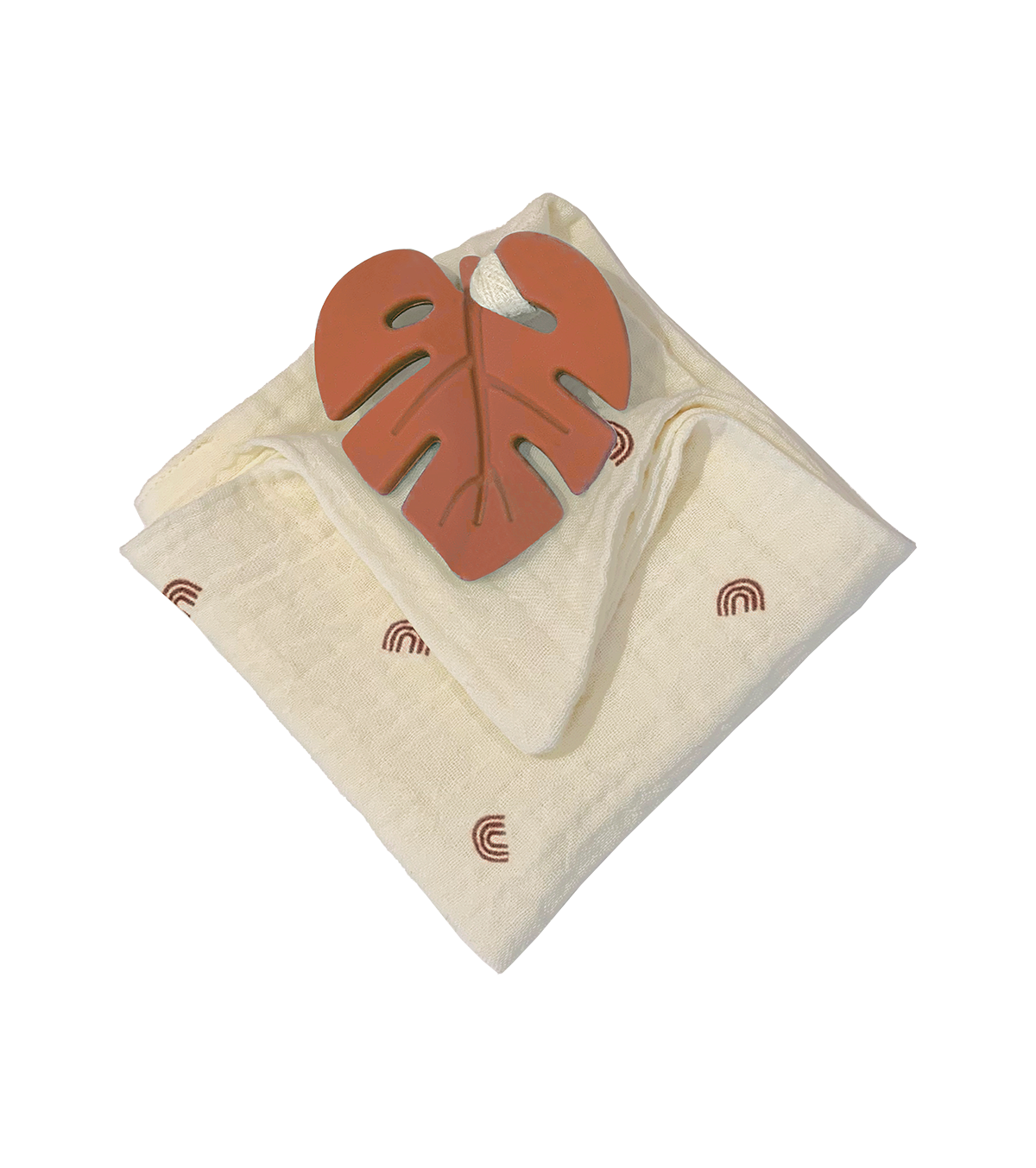 Anneau de dentition feuille terracotta et lange rainbow