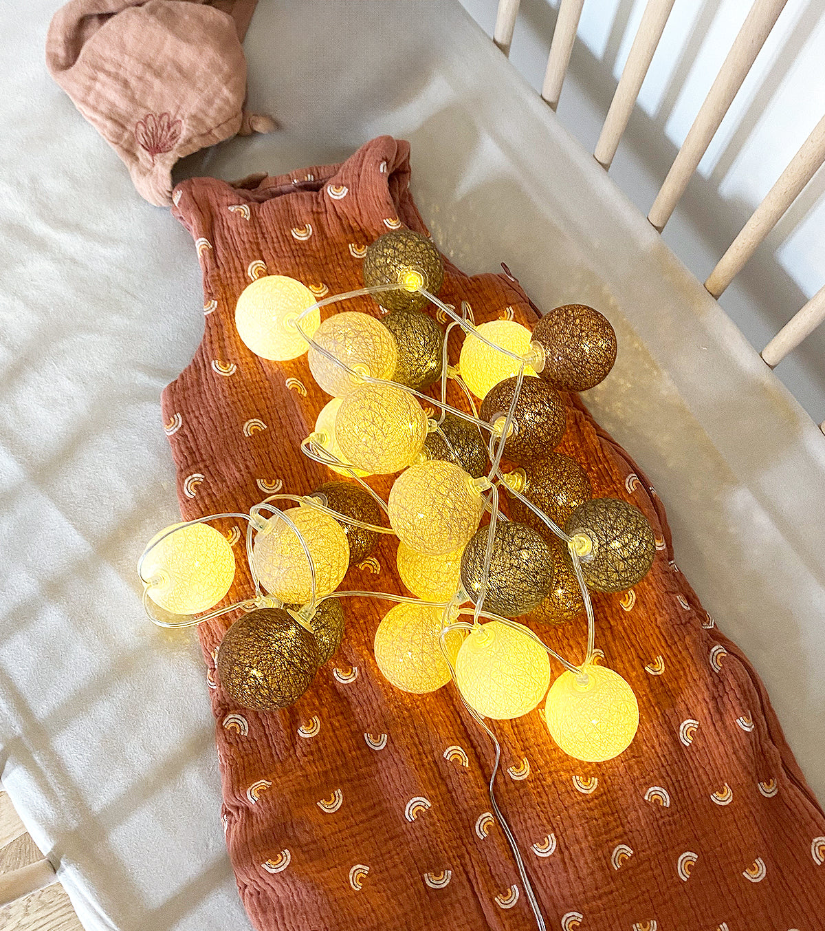 Intensité variable de luminosité : réglez la luminosité selon vos préférences avec 3 niveaux d'intensité (100%, 50%, 25% OFF). Cette guirlande composée de boules de coton à également un mode veilleuse automatique pendant 2 heures à l'intensité de 25%, idéal pour la chambre de bébé.