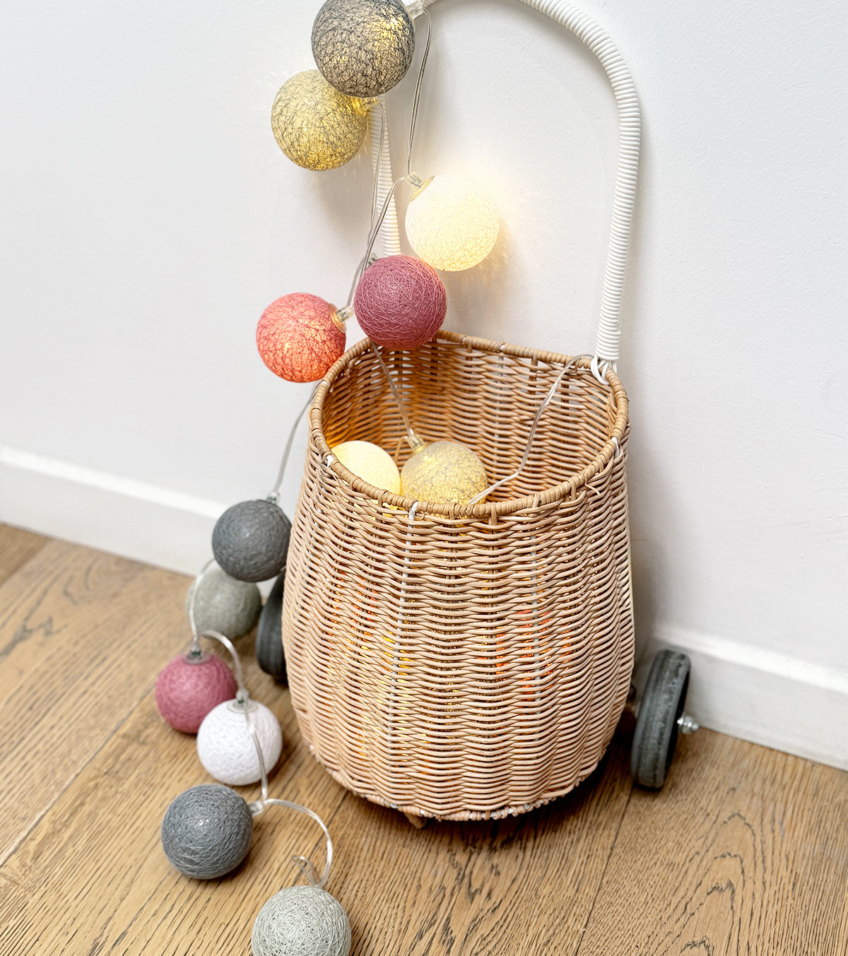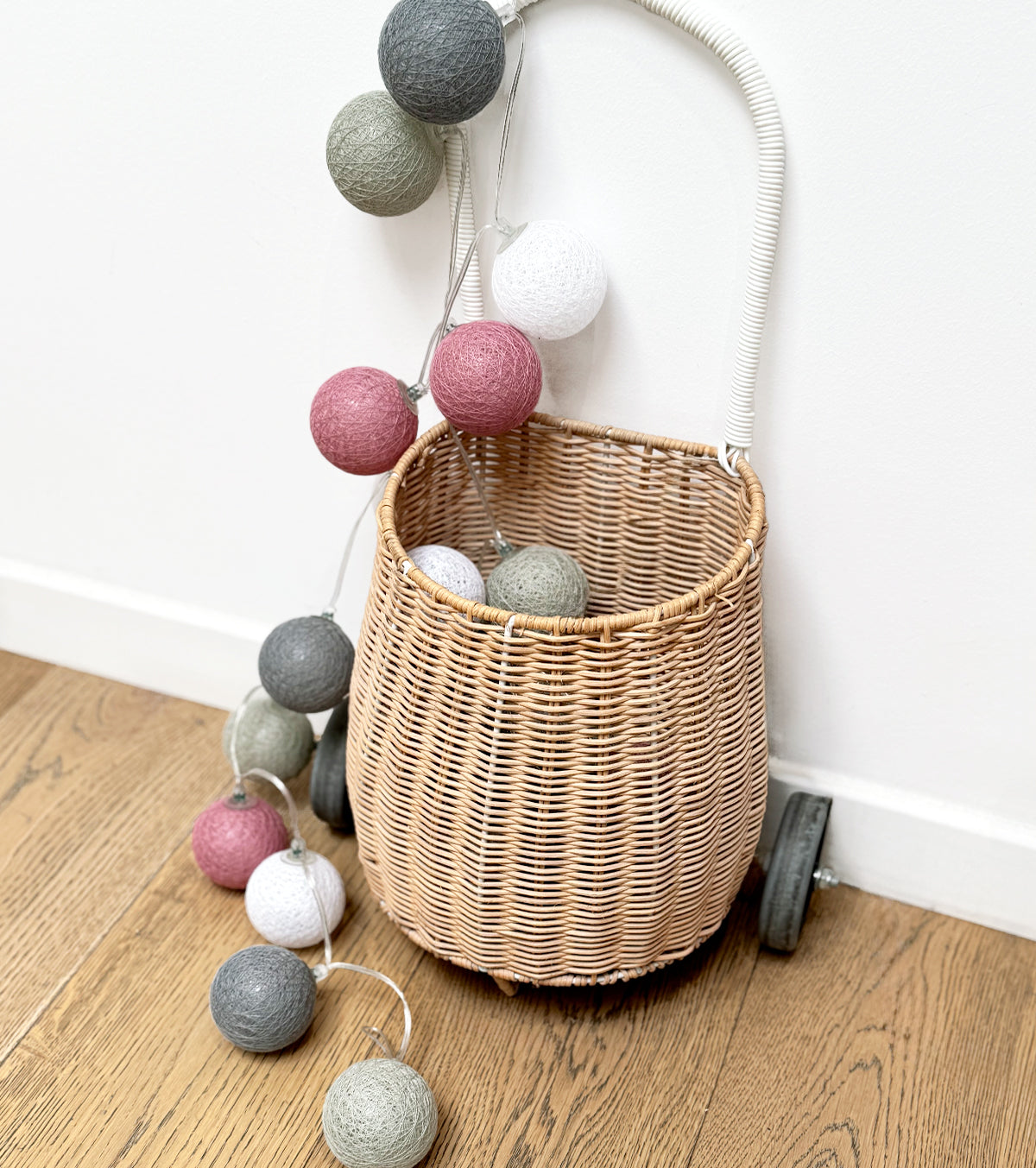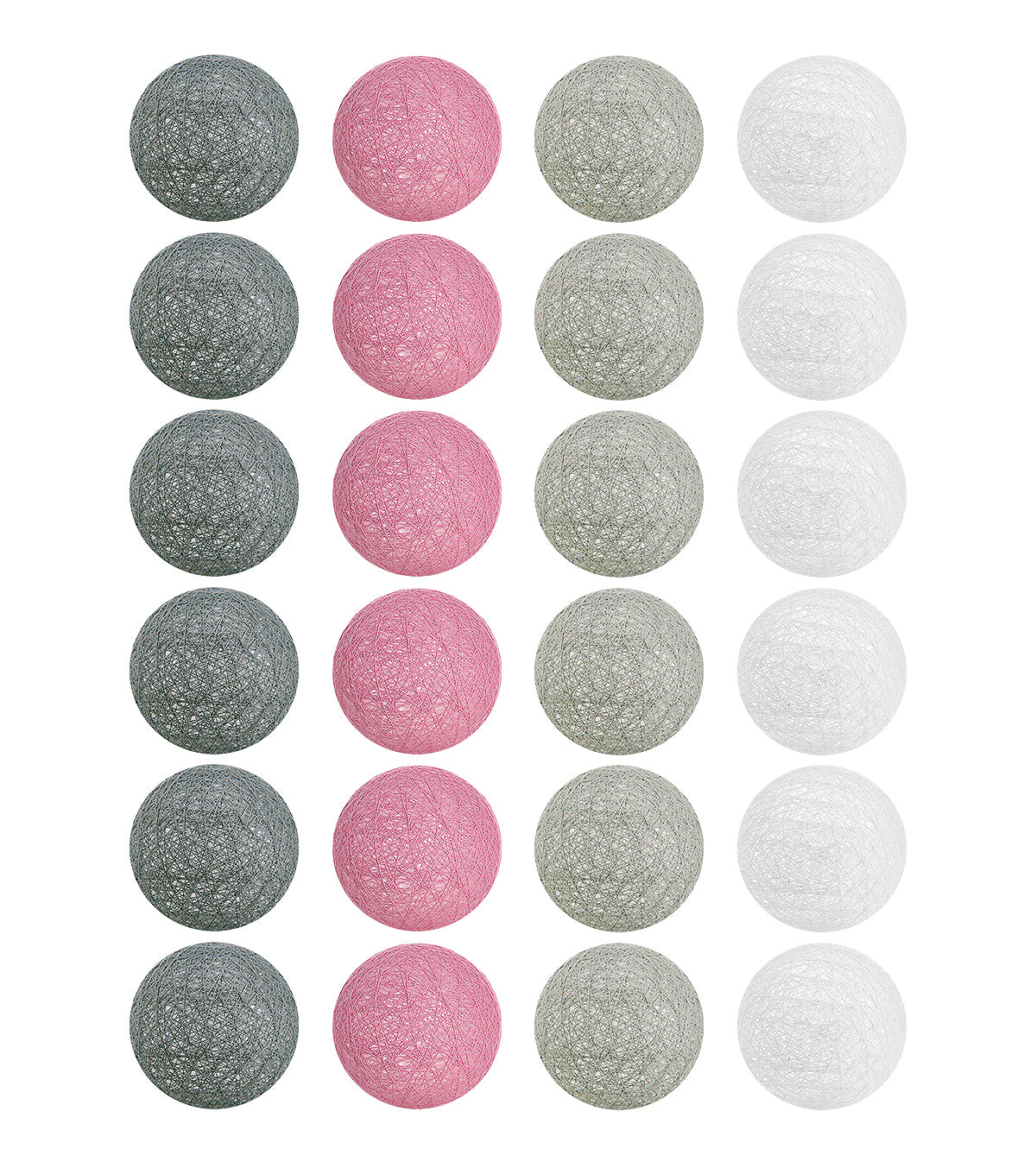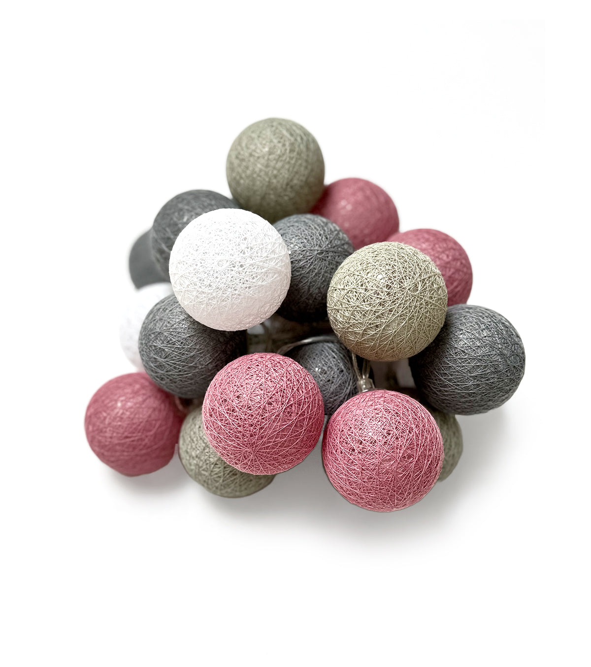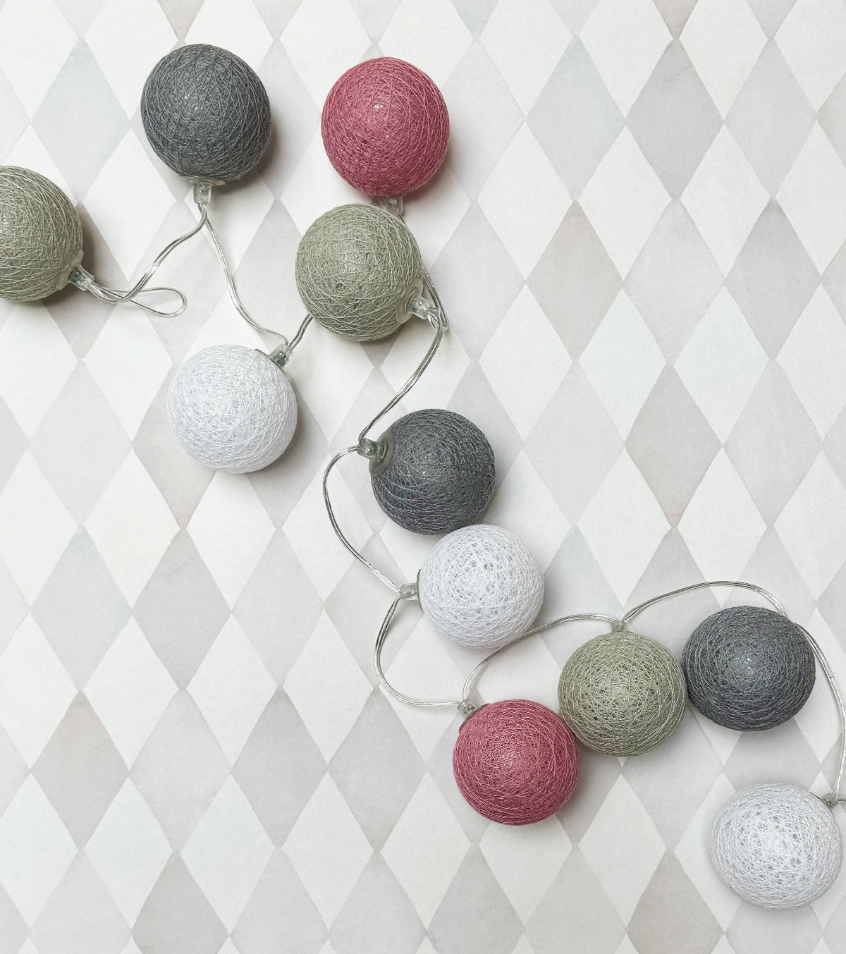 Guirlande lumineuse 24 boules de coton (rose, gris) - Éclairage décoratif intérieur