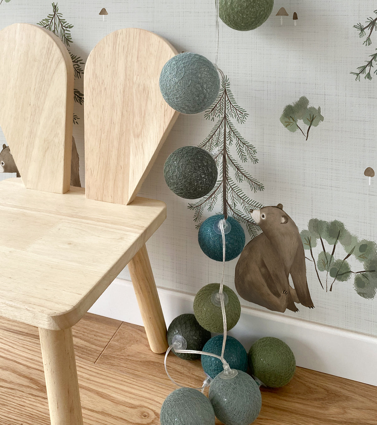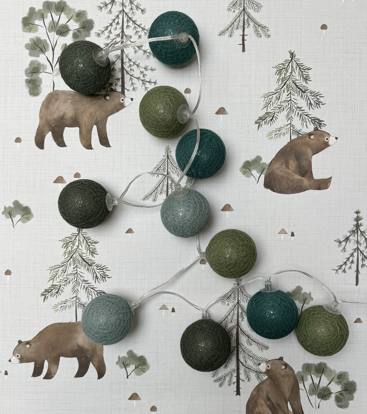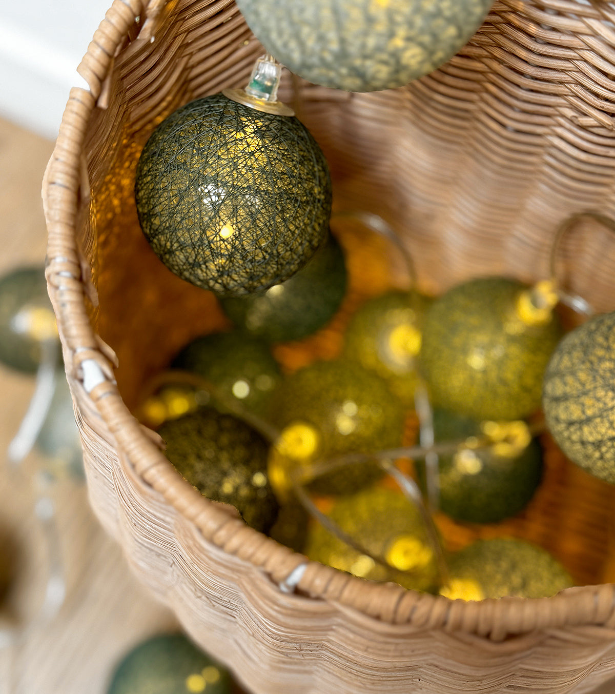 Guirlande lumineuse 24 boules de coton (vert) - Éclairage décoratif intérieur