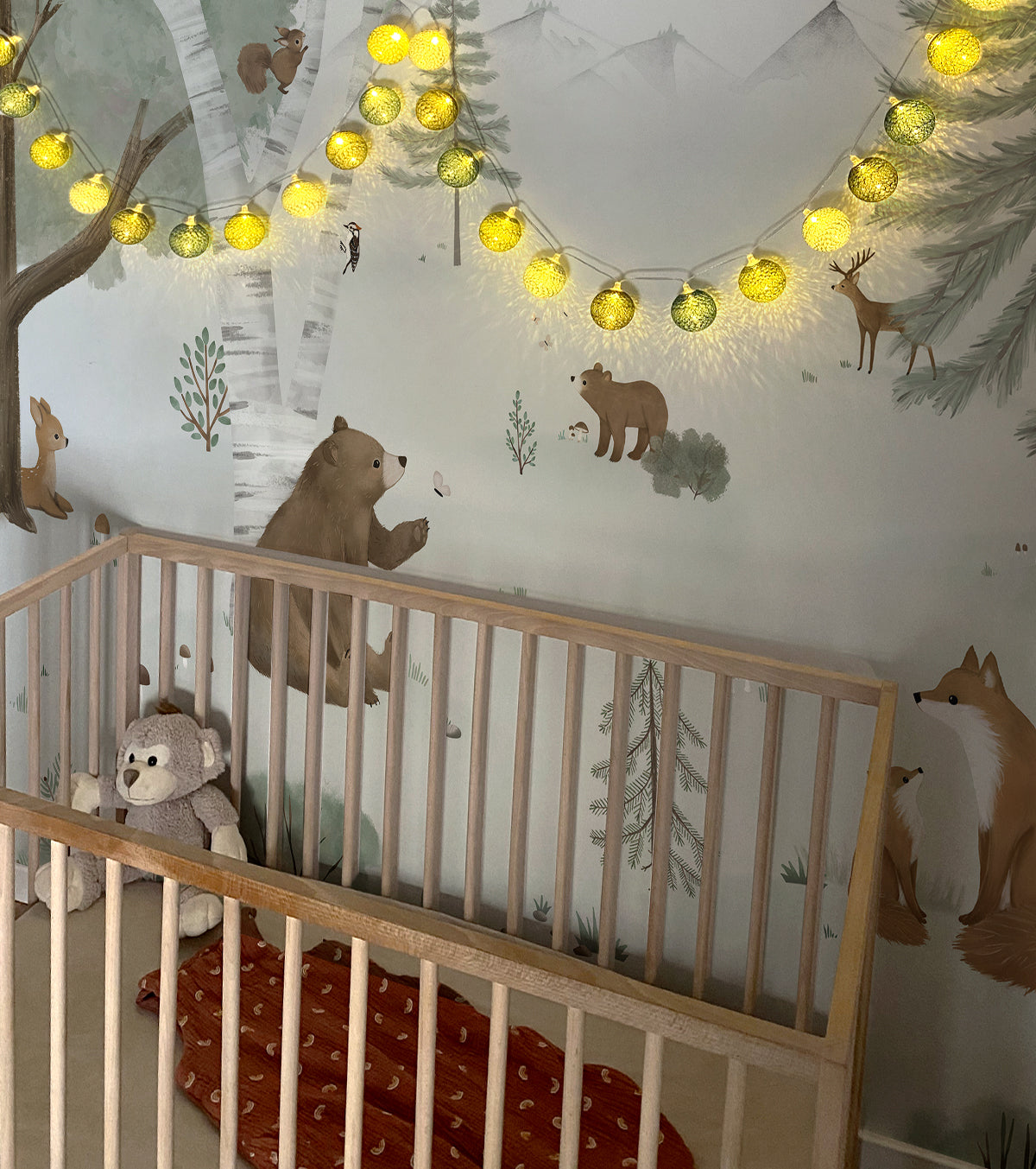 Intensité variable de luminosité : réglez la luminosité selon vos préférences avec 3 niveaux d'intensité (100%, 50%, 25% OFF). Cette guirlande composée de boules de coton à également un mode veilleuse automatique pendant 2 heures à l'intensité de 25%, idéal pour la chambre de bébé.