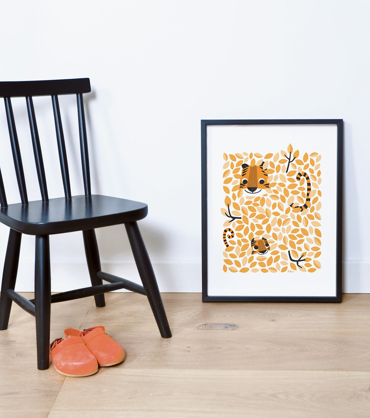 HIDE & SEEK - Affiche enfant - Tigre et feuilles