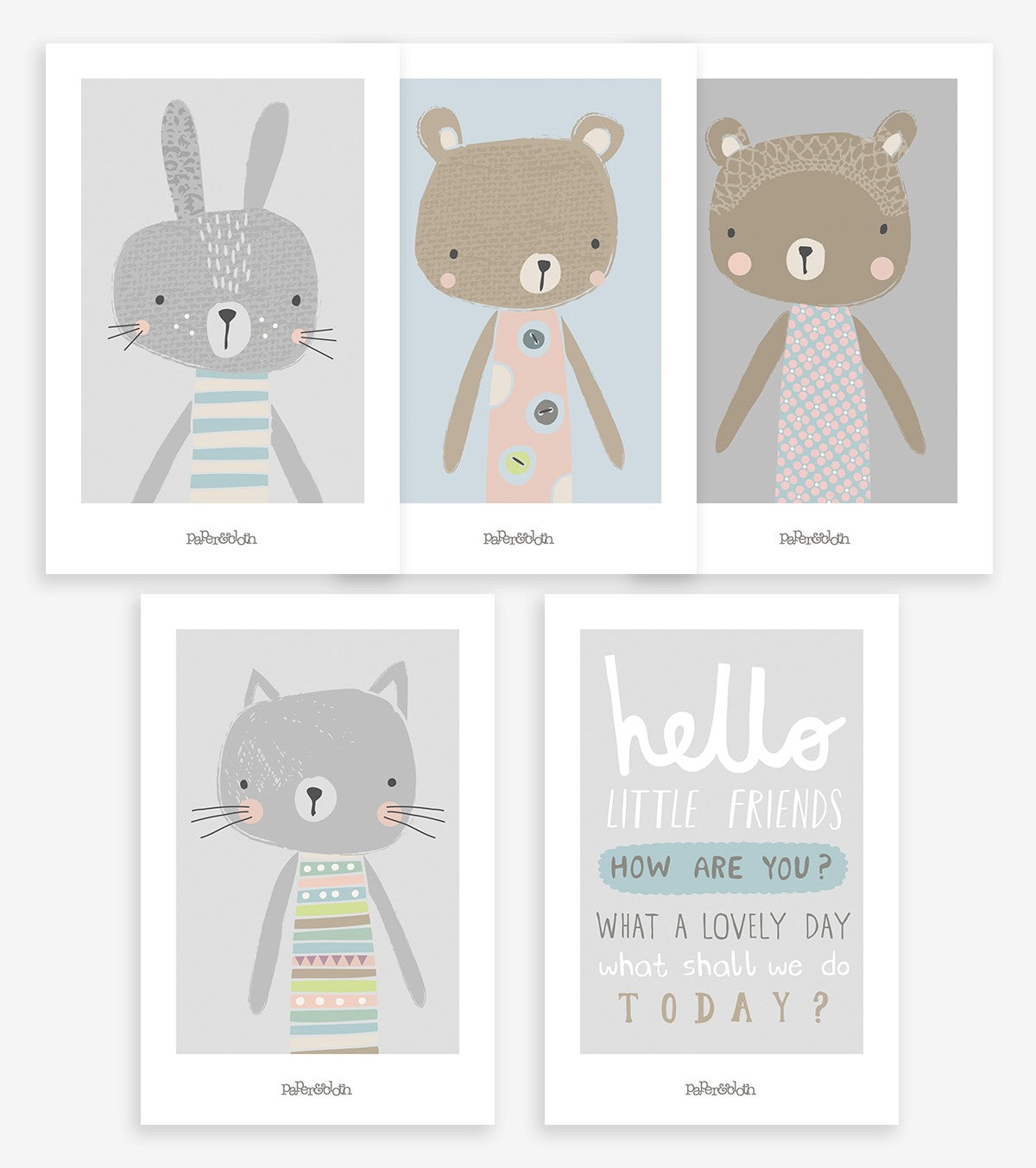LITTLE FRIENDS - Cartes décorative - Animaux (lot 5)