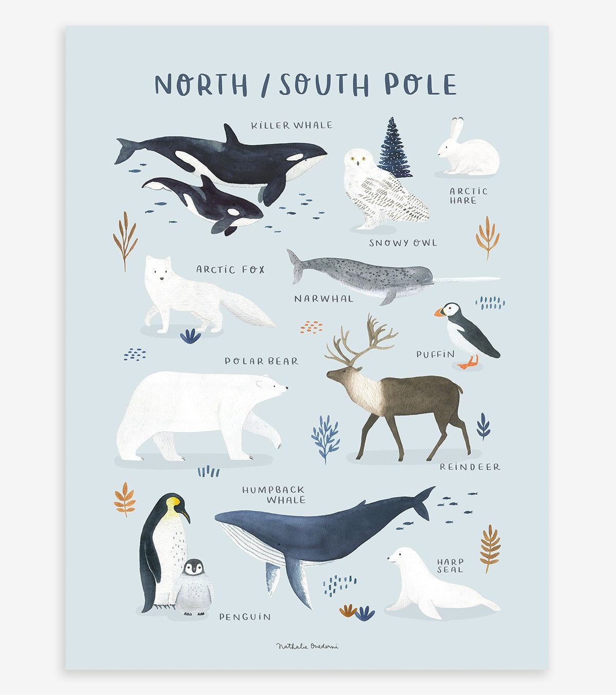 LIVING EARTH - Affiche enfant - Animaux pôle nord et sud