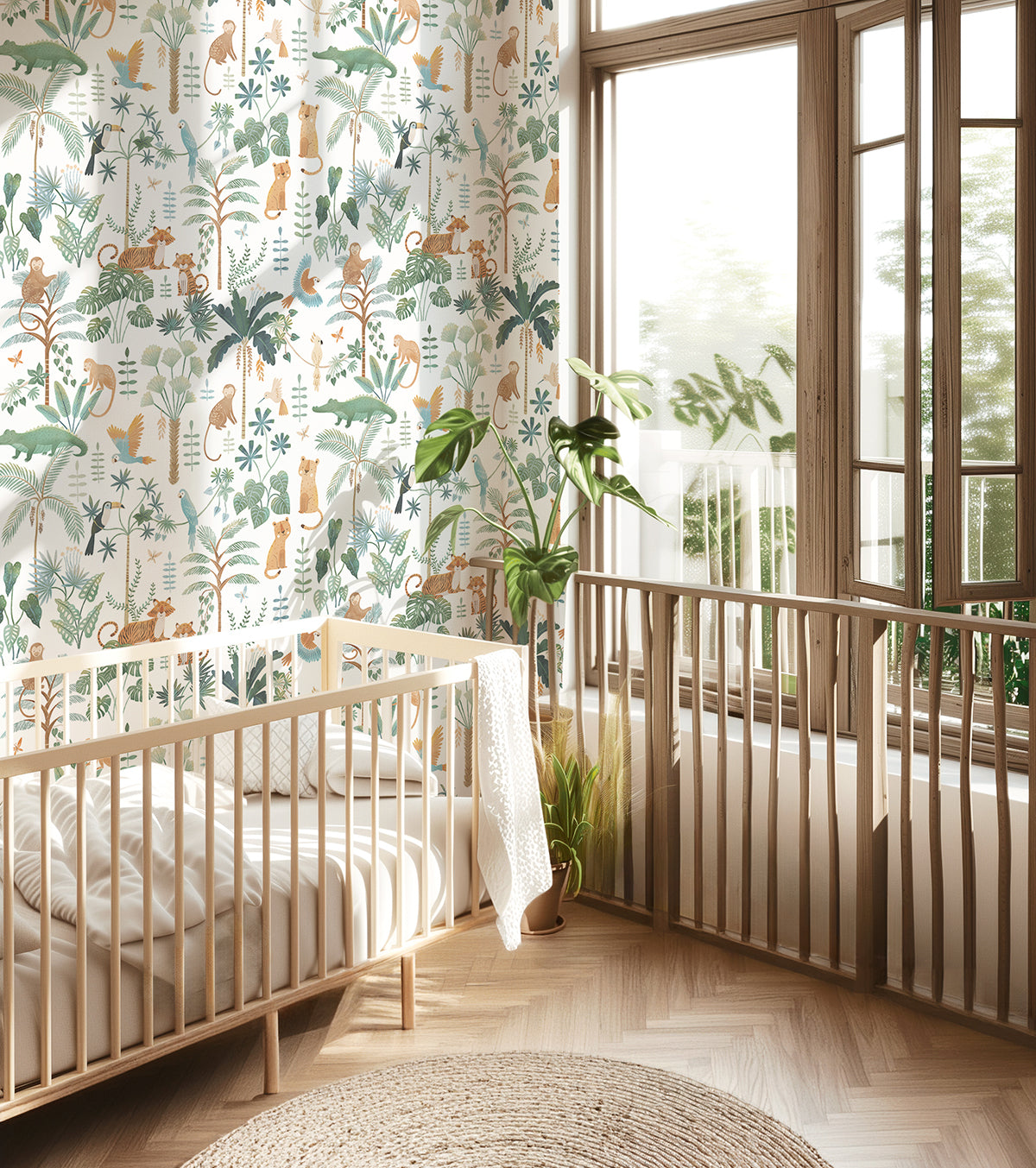 - Chambres de bébé et jeunes enfants : Crée une ambiance amusante et éducative, stimulant l’imagination avec des motifs inspirés de la nature sauvage.