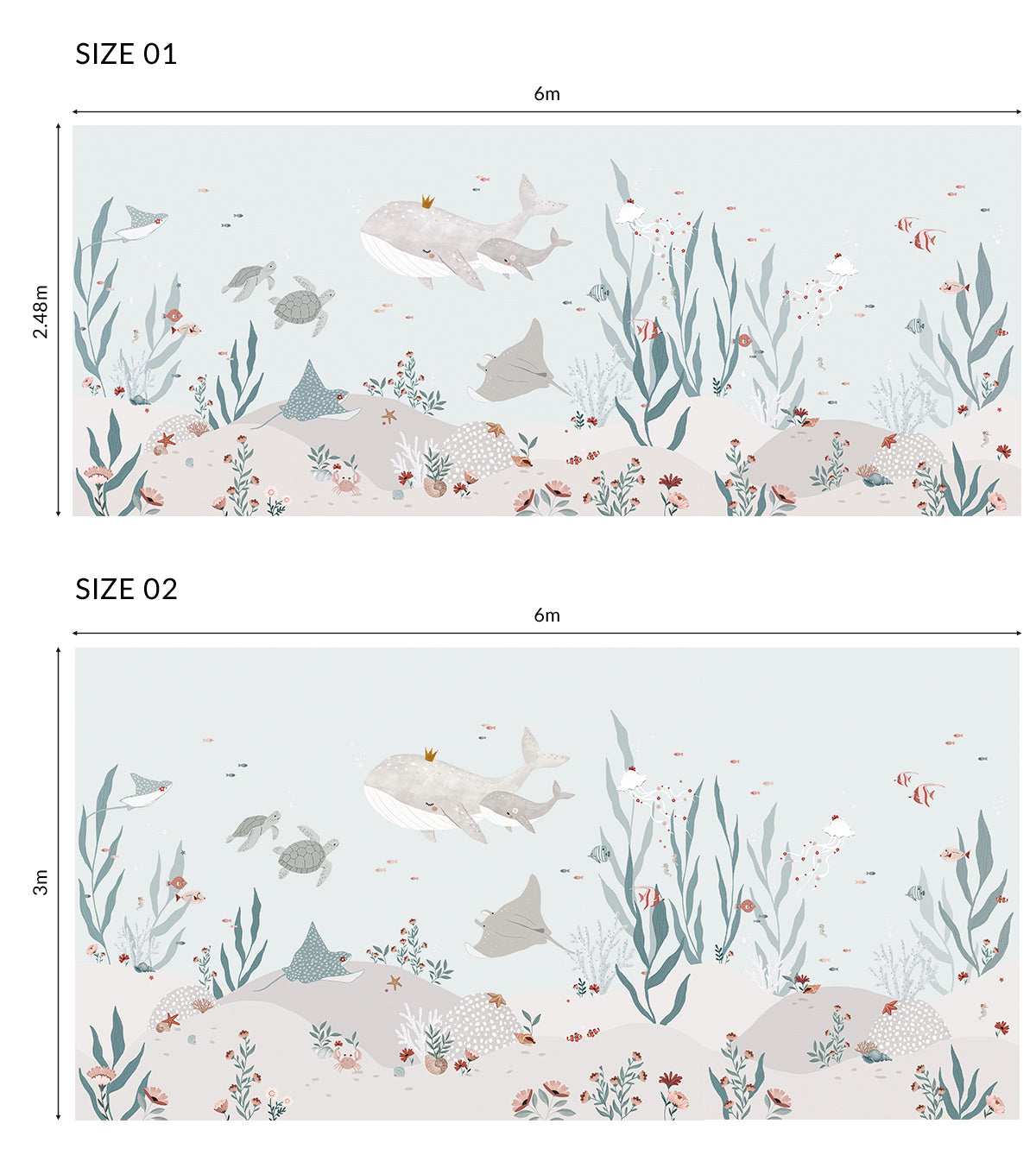 Option 3 : Les baleines et les animaux marins centrés au milieu du décor de 6 mètres