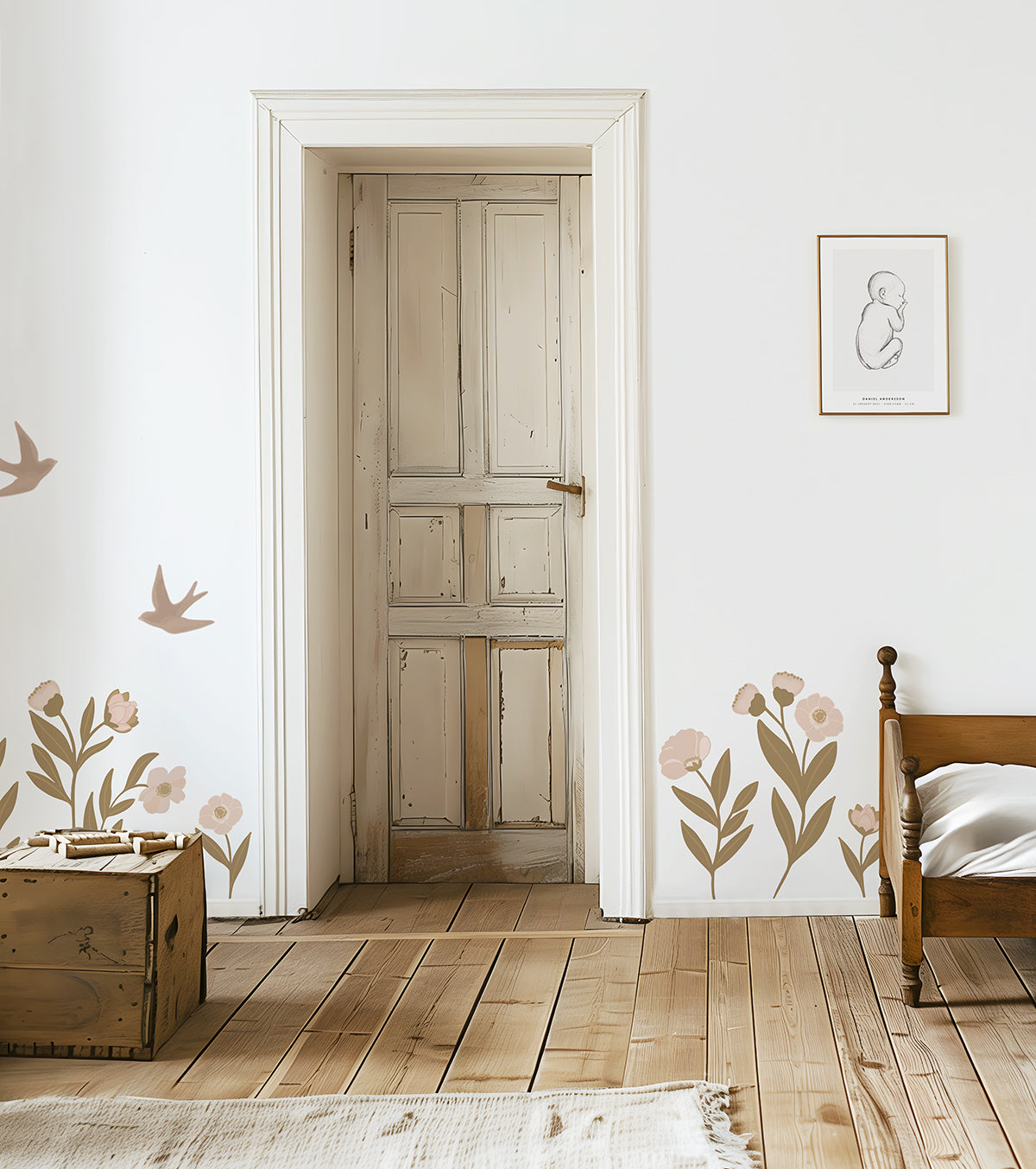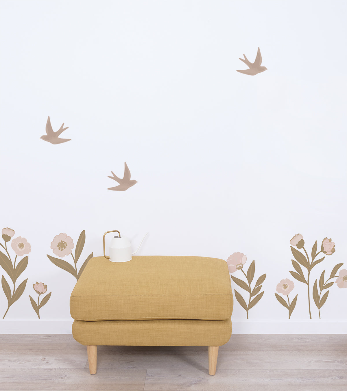 Le sticker mural Éléonore – Fleurs et Hirondelles est l’élément décoratif idéal pour transformer la chambre de votre enfant en un espace enchanteur. Ses fleurs délicates et ses hirondelles légères apportent une touche de nature élégante et poétique. Conçu pour stimuler l’imaginaire des enfants, ce motif raffiné s’intègre parfaitement dans un univers tendre et apaisant.