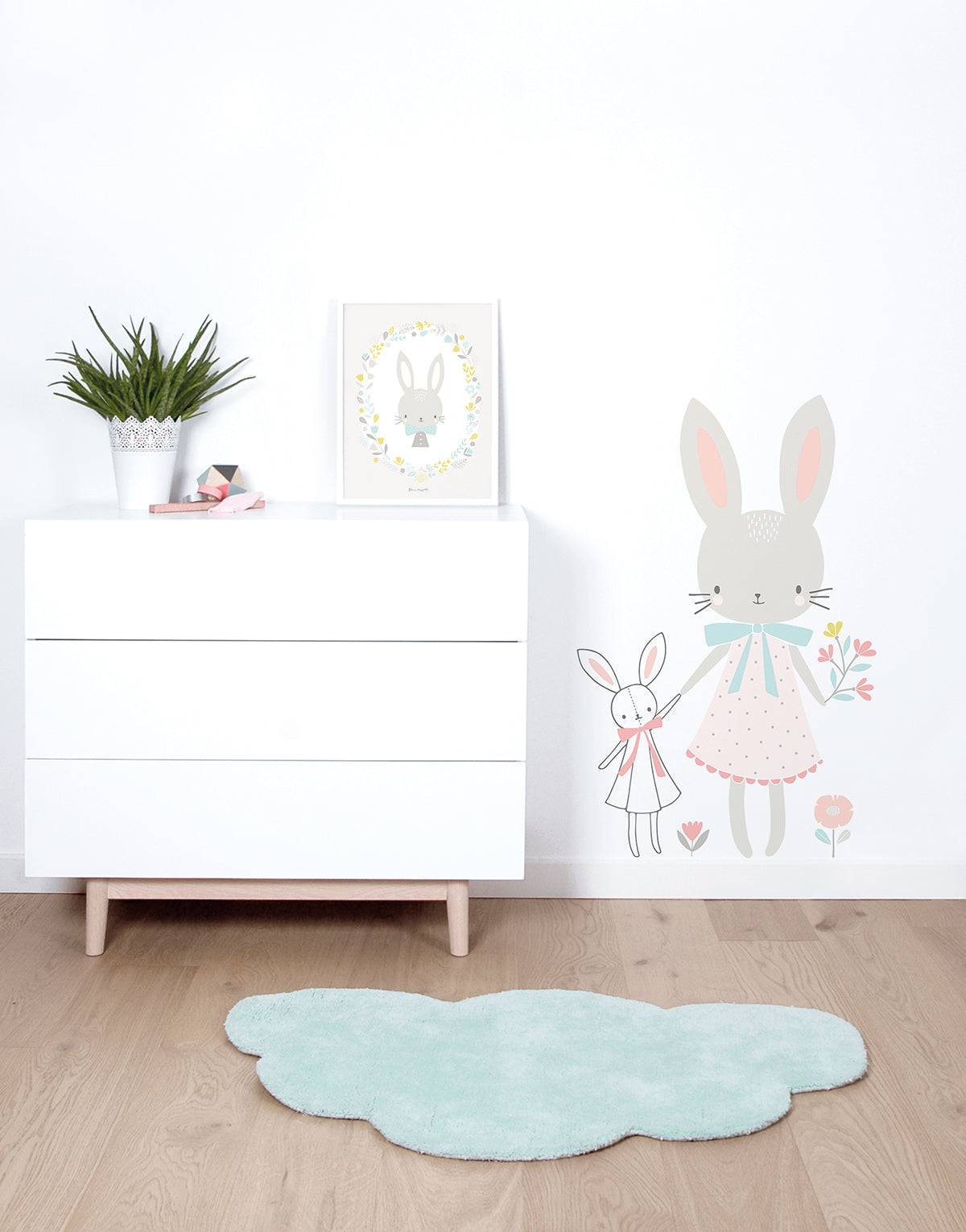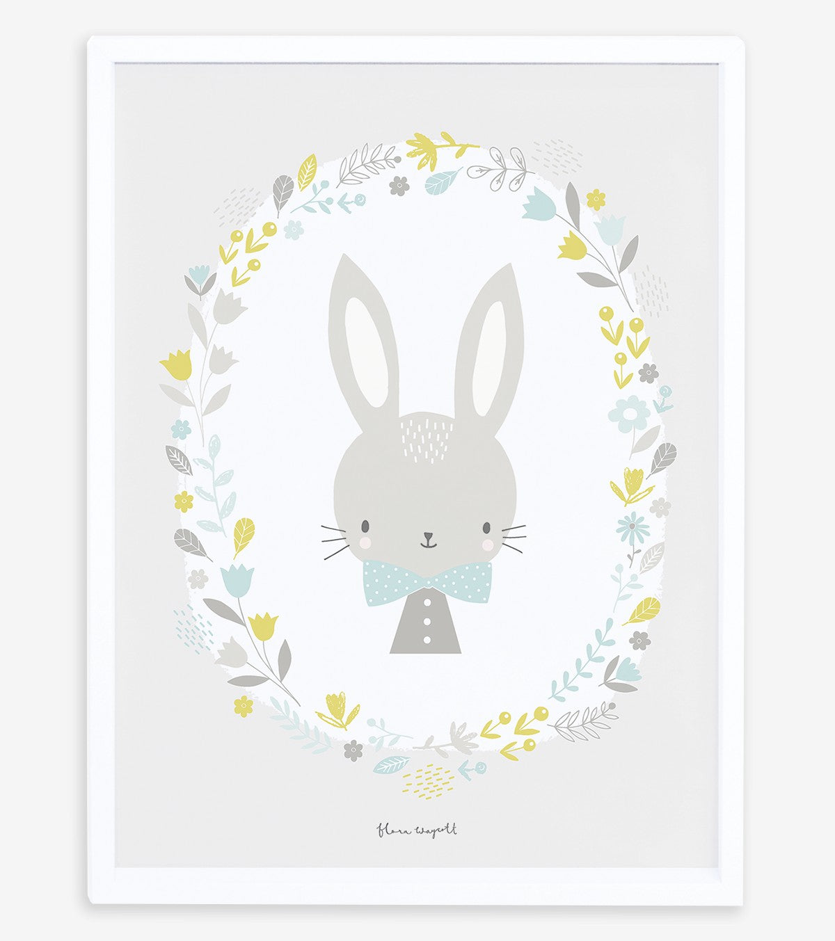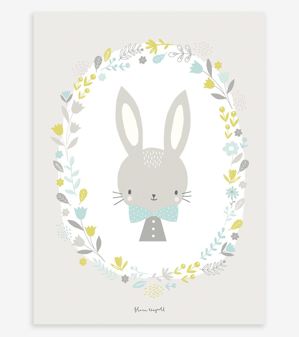 SWEET BUNNIES - Affiche enfant - Bébé lapin et fleurs